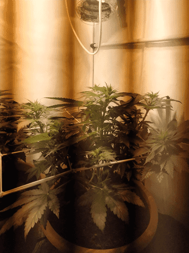 На четвертой неделе каннабис хорошо вытянулся, и гровер установил сетку ScrOG. Он отказался от прежней подкормки. Теперь растения получали только 2,5 мл/л Mendelson flower. В конце неделе кусты уже выросли выше сетки, и гровер начал растягивать ветви по всей рабочей площади.