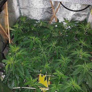С началом шестой недели гровер сменил световой цикл на 12/12 и заменил лампу на 250 Вт. Также растихи были немного подогнуты по методике LST. Полив был увеличен до 1 литра на куст в сутки. Несмотря на то, что растения были еще в стадии предцвета и полноценных шишек еще не было видно, гровер отметил появившийся запах.