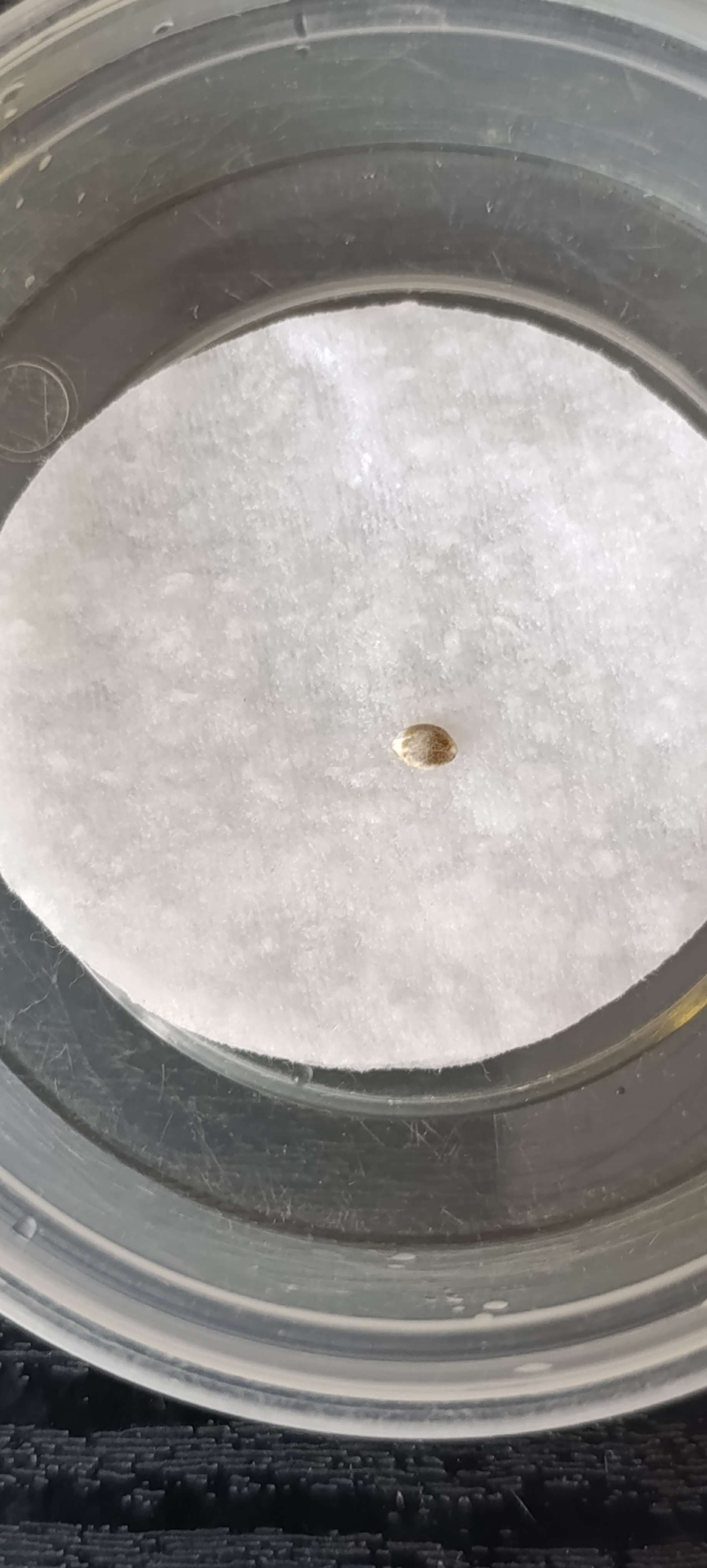 Спустя 1 сутки семечка показала корешок около 5 мм. Заложили проросшую семку в землю. Поставили пока в "огородный" бокс, т.к. в "девичьем будуаре" сейчас сушится Прасковья (заходите в наш репорт PAPAYA COOKIES AUTO)