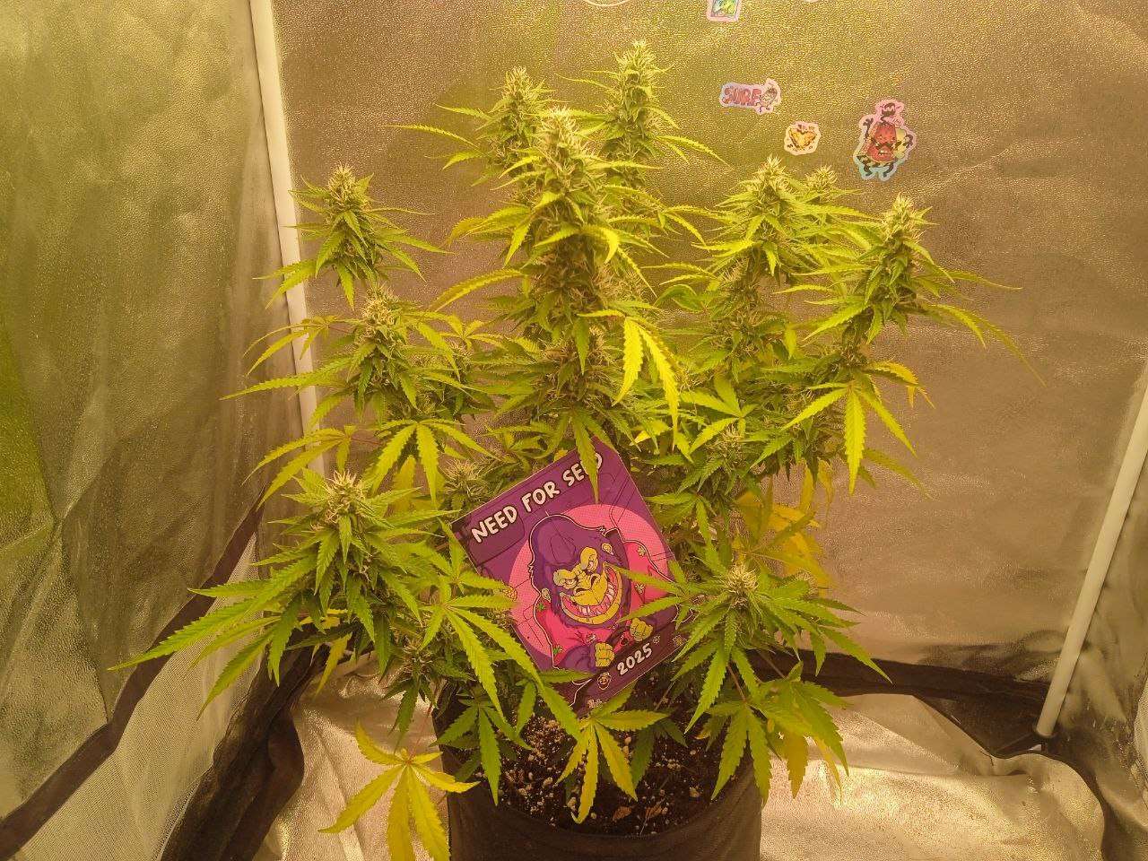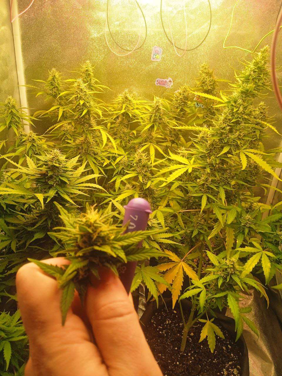 На девятой неделе колы всех кустов (кроме третьего - ещё не оправился от стресса) начали бухнуть прямо на глазах - видно растихам понравился прикорм. Даже танджи, которая стояла скромная в углу внезапно дала напомнить о себе плотными бутонами и вытягиванием вверх. В целом растения чувствуют себя хорошо, жара прошла, теперь осень - можно держать температуру в комфортном режиме. Главная потенциальная проблема теперь - это плесень. Осушителя нет, надо придумать вариант на коленке, если планирую 3 куста довести до нормального харва. Куст под номером 4 будет захарвлен через 2-3 недели для заполнения ожидания до харвеста. Попутно уже была снята проба и по эффекту хорошая успокаивающая индика. Покататься на коврике, размять кости, порисовать картину, поесть - это всё про карамель. Хороший эффект для вечернего покура.