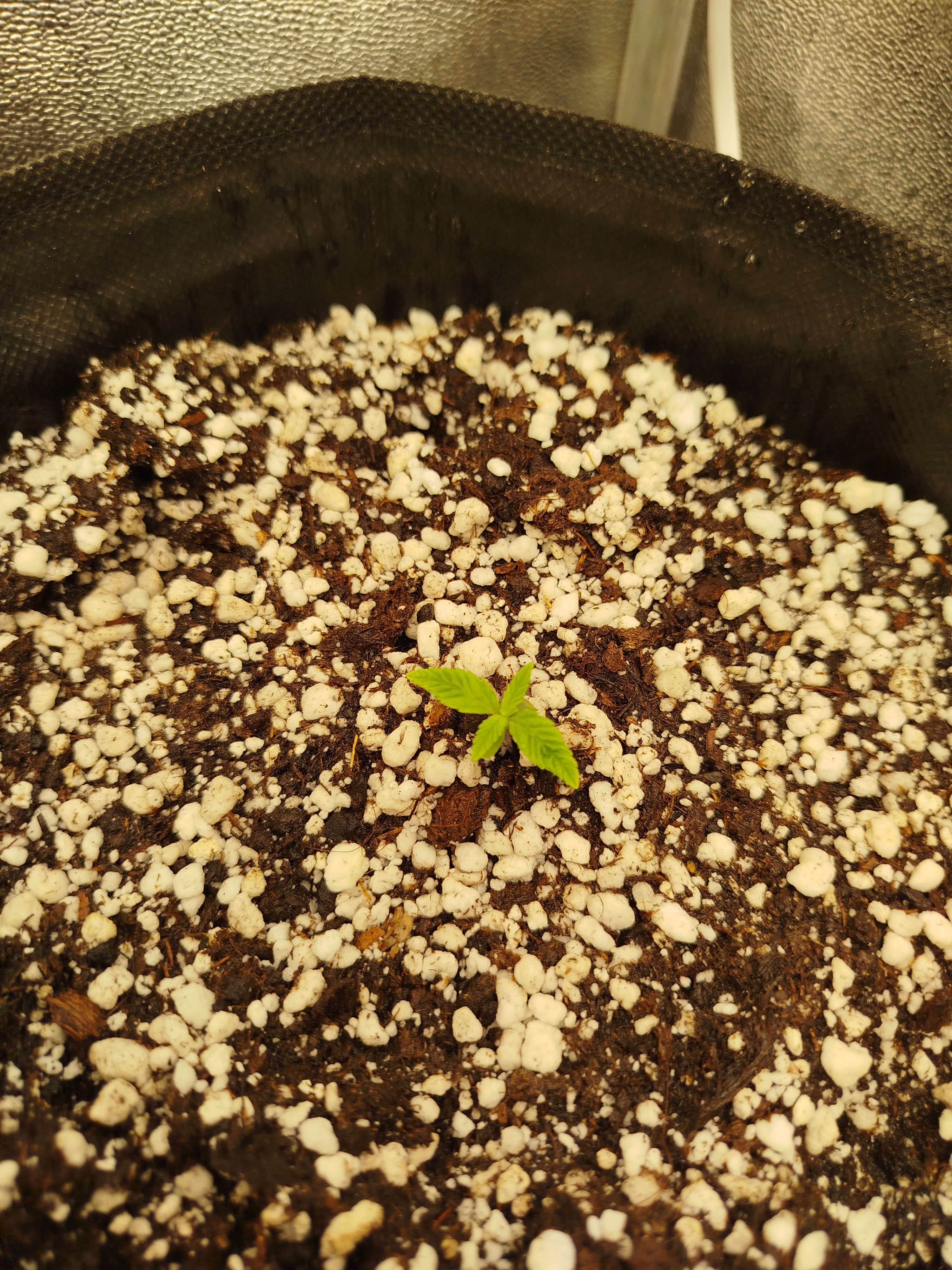 Через два дня появился жёлтый росток уже без каски, пожил пару дней под стаканчиком, но потом я заметил что первые листья начали вверх тянуться сильно и решил стаканчик убрать.