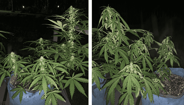На седьмой неделе набор зеленной массы немного приостановился. Рост кустов был 60 см. Конопля переключилась на отращивание бутонов. Они уже все были сформированы и начали покрываться трихомами, которые активно начали выделять смолу. Шишки уже были липкими и ароматными. Климатические условия и подкормка оставались прежними. Никаких проблем не наблюдалось. В конце недели прошел дождь, обильно полив растения, из-за чего их листва немного опустилась.