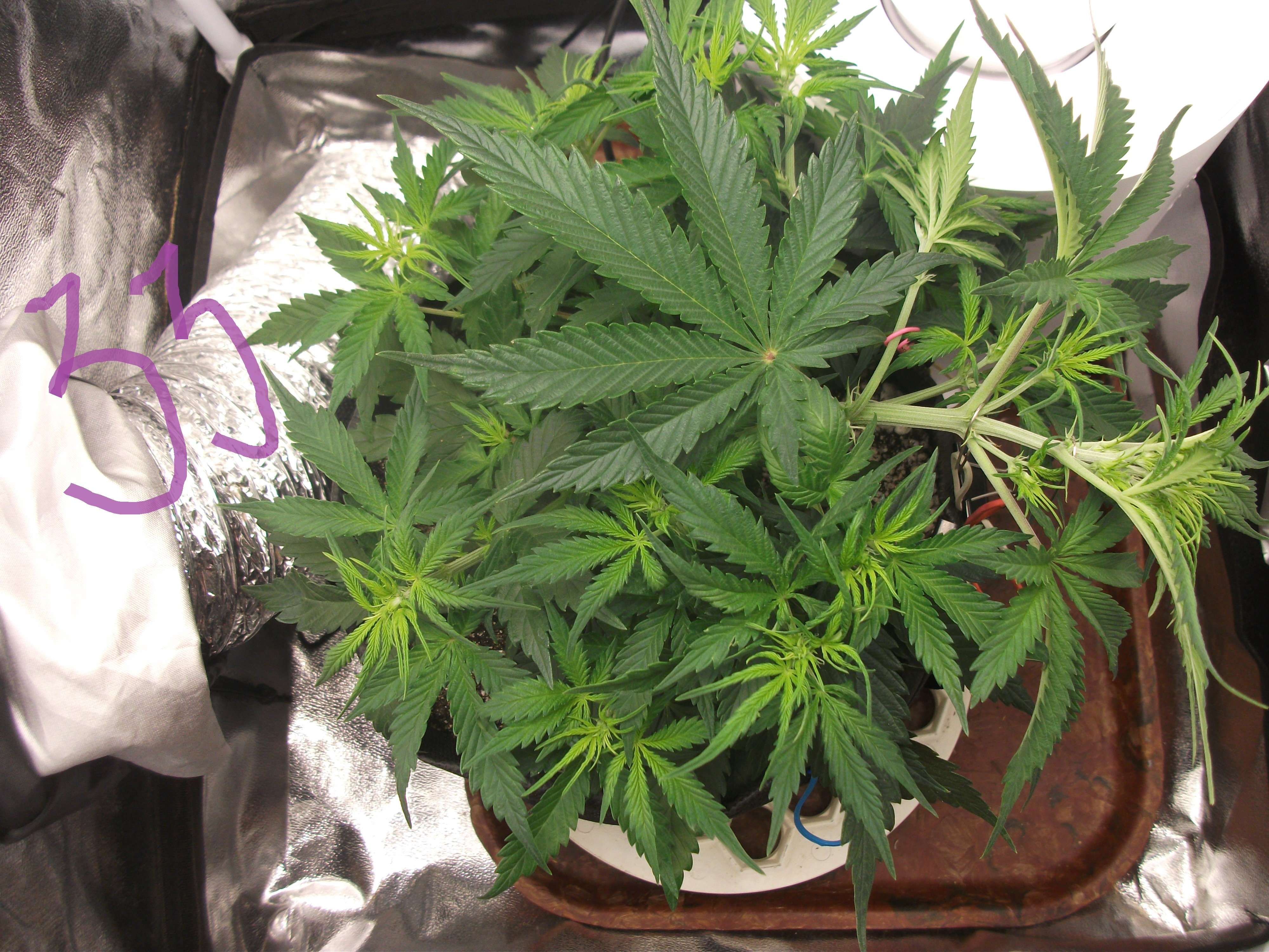25.02 (33 день) Температура 26, влажность 60 ровно. Долго гонял - резать/не резать, в итоге решил опираться на опыт старших до конца, чикнул 4 нижних лопуха и один центровой, из-за которого весь кипишь и затевался + вынес попить, дал недолитый позавчера литр, но не компота, а воды с каплей HB101 и 1.5 CalMag, ph ровнял Ломоносовым 3 капли с 6,86 до 6,5-6,41/ 328ppm.