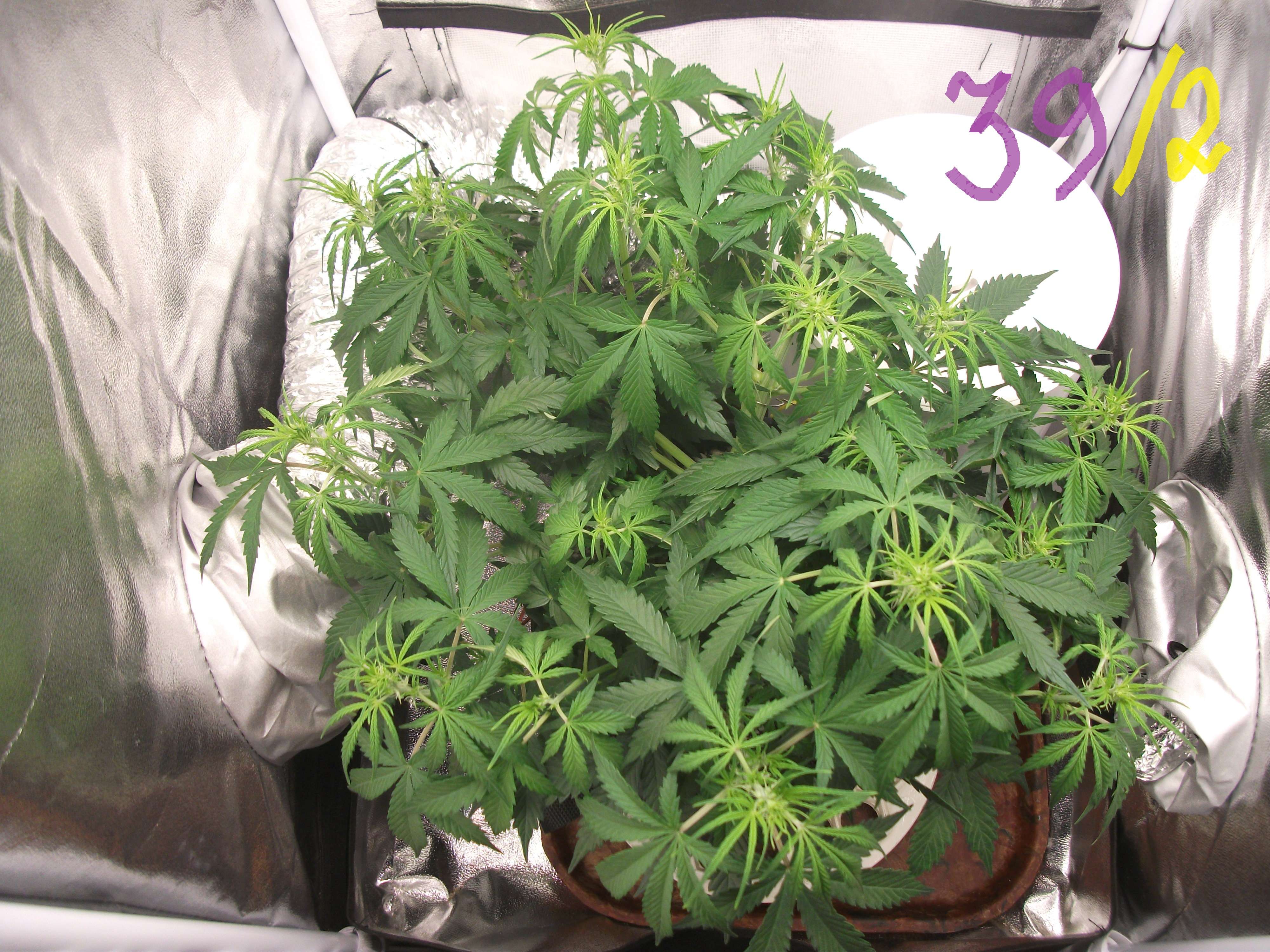 3.03 (День 39/2) Полив двумя литрами воды с CalMag 2 мг/л и капля HB101 на литр. Срезал 5 лопухов. Рост 26см.