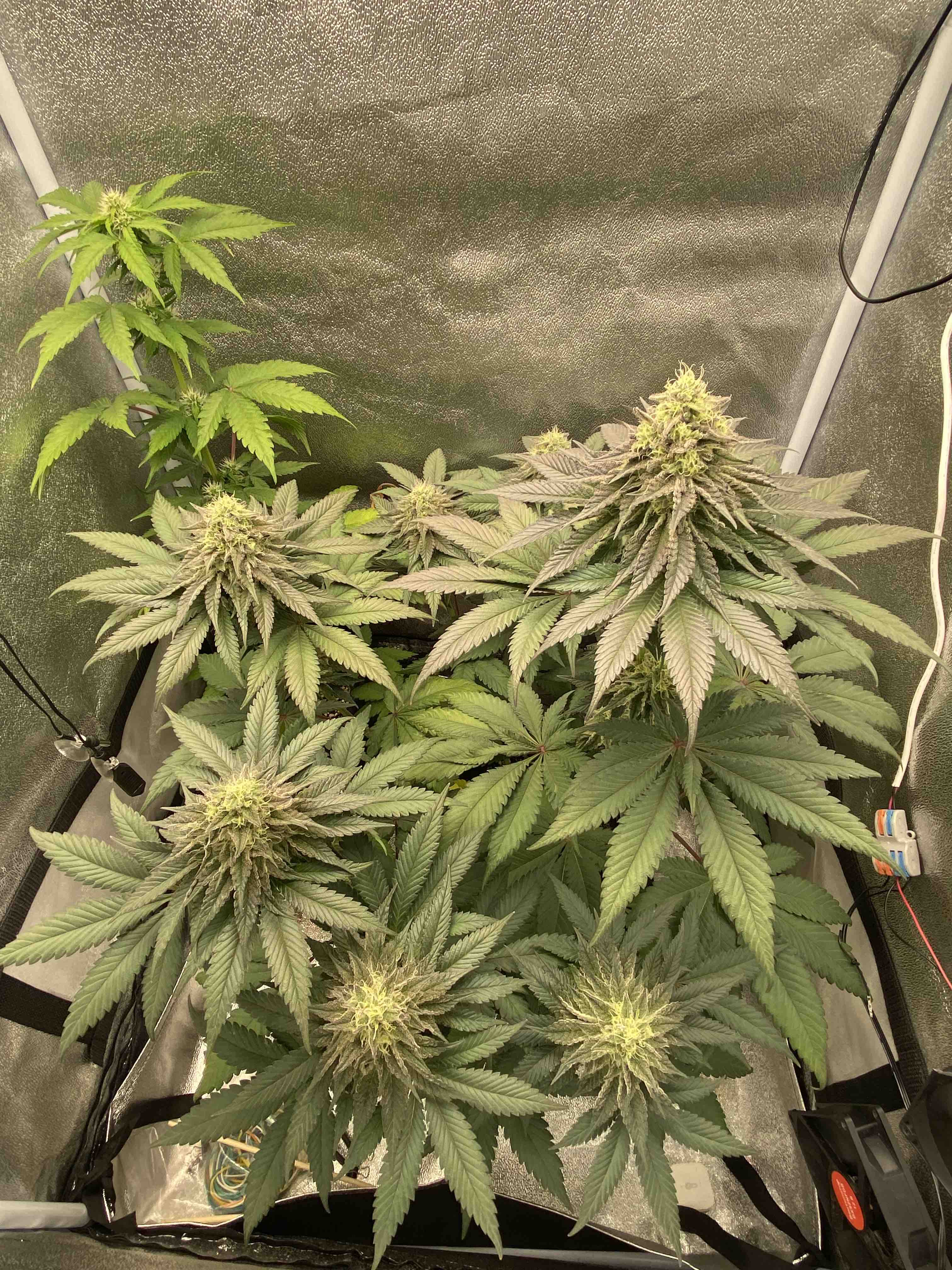 Хоть и не планировал, но добавил 60вт света (минифермер 1,6u), досветив тем самым шишки пониже. теперь у них 40-50к lux, у центральной 65к lux.