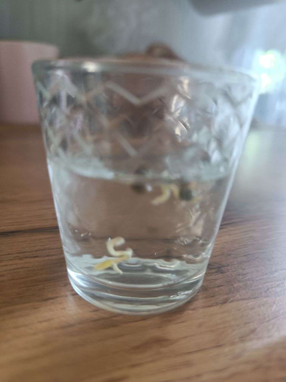 Шустро вылезли корешки, на первые сутки,каску скинули на 2 сутки тоже в рюмке с водой и перекисью, та что скинула полностью каску за 11 часов вытянулась из земли на 1.5 см и лезит листочик уже) , та что не полностью скинула ,в рюмке, сдлелал это в земле и вылезла на 1 см ,тоже за 11 часов