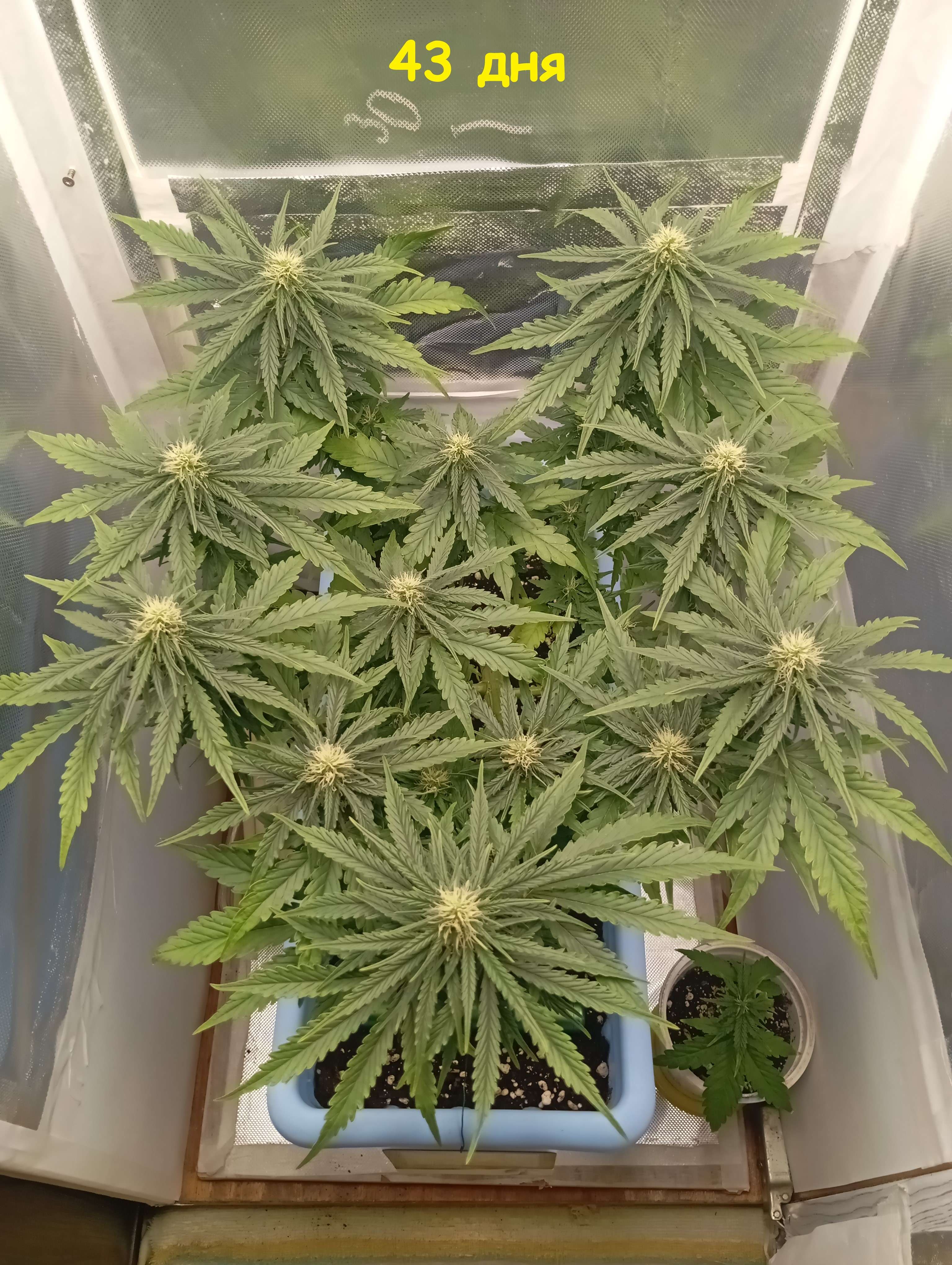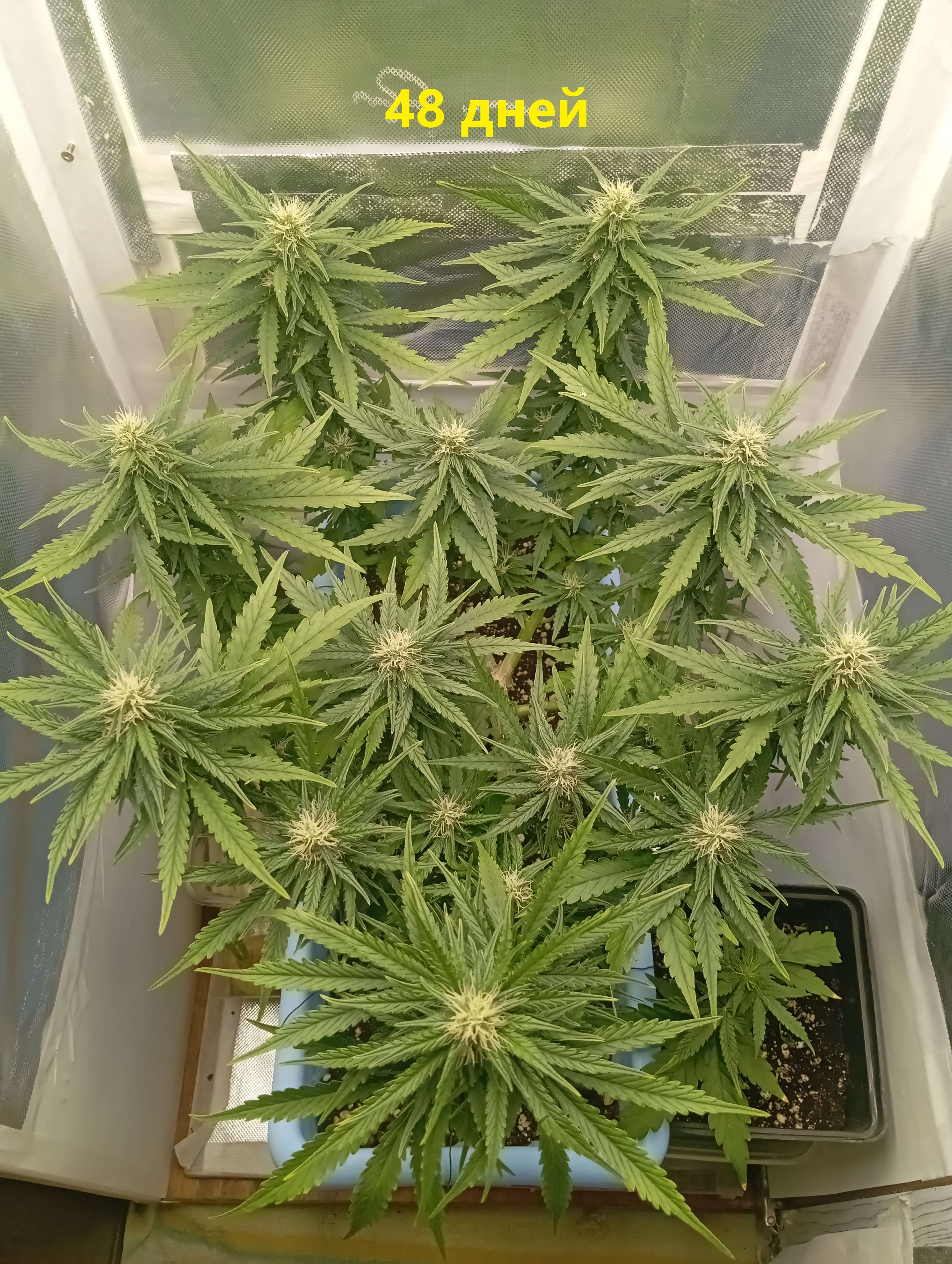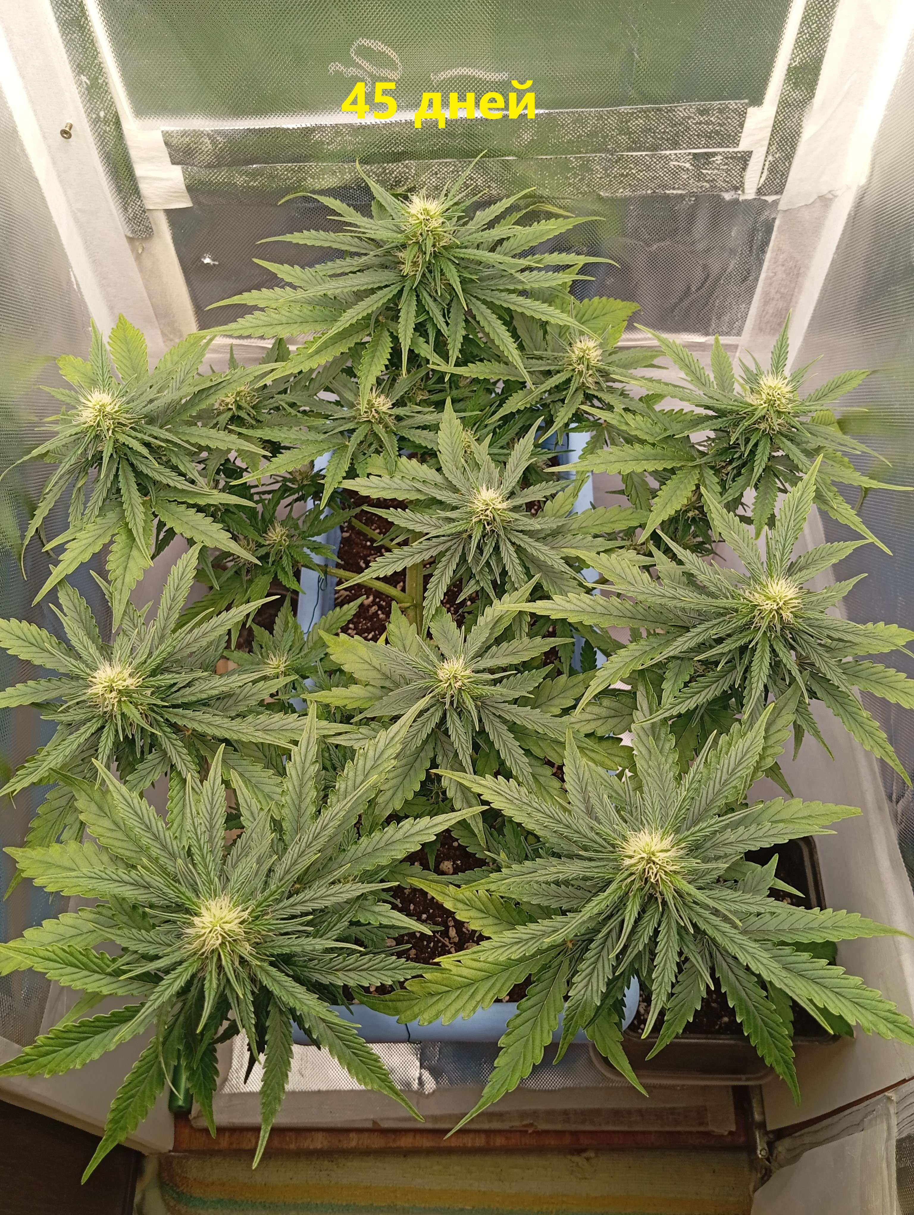 Срорость радует. До паспорта 2 недели, ещё хорошо покормлю эти дни, по схеме 2 полива удобрами подряд, один водой. И на паспортный срок уже трихомы глядеть буду. По сроку харва там уже понятно будет, скорее всего ещё+ неделя на водичке с мелассой и мёдом и на 70 дне - всё. Ну поглядим ближе к делу.