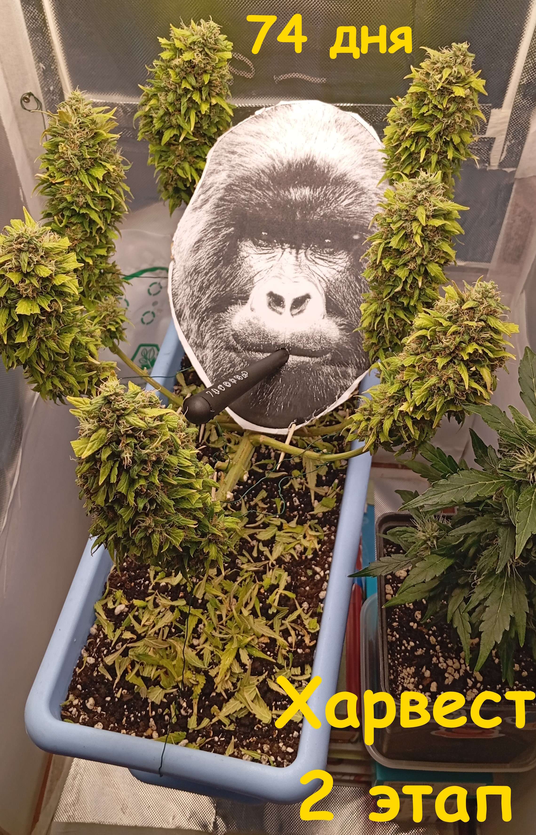 На 74 дне срезал 7 оставшихся основных кол, мутные трихомы с уже появившимся янтарём. Отправил в экспресс сушку.