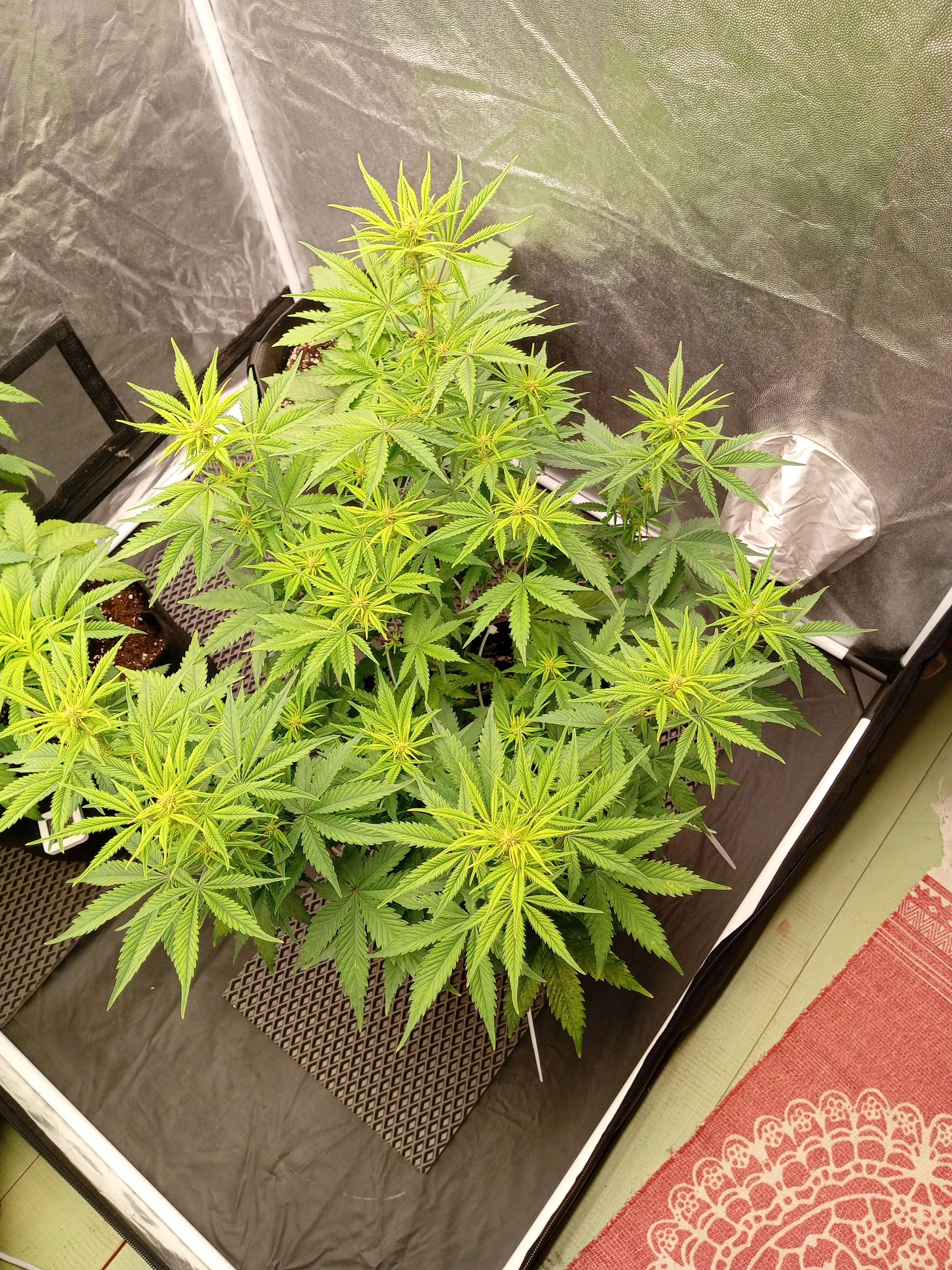 Полил с удобрениями, добавил красного света и немного убавил тот, что на вегу, что в температура сильно не поднималась - в палатке и так жарковато.