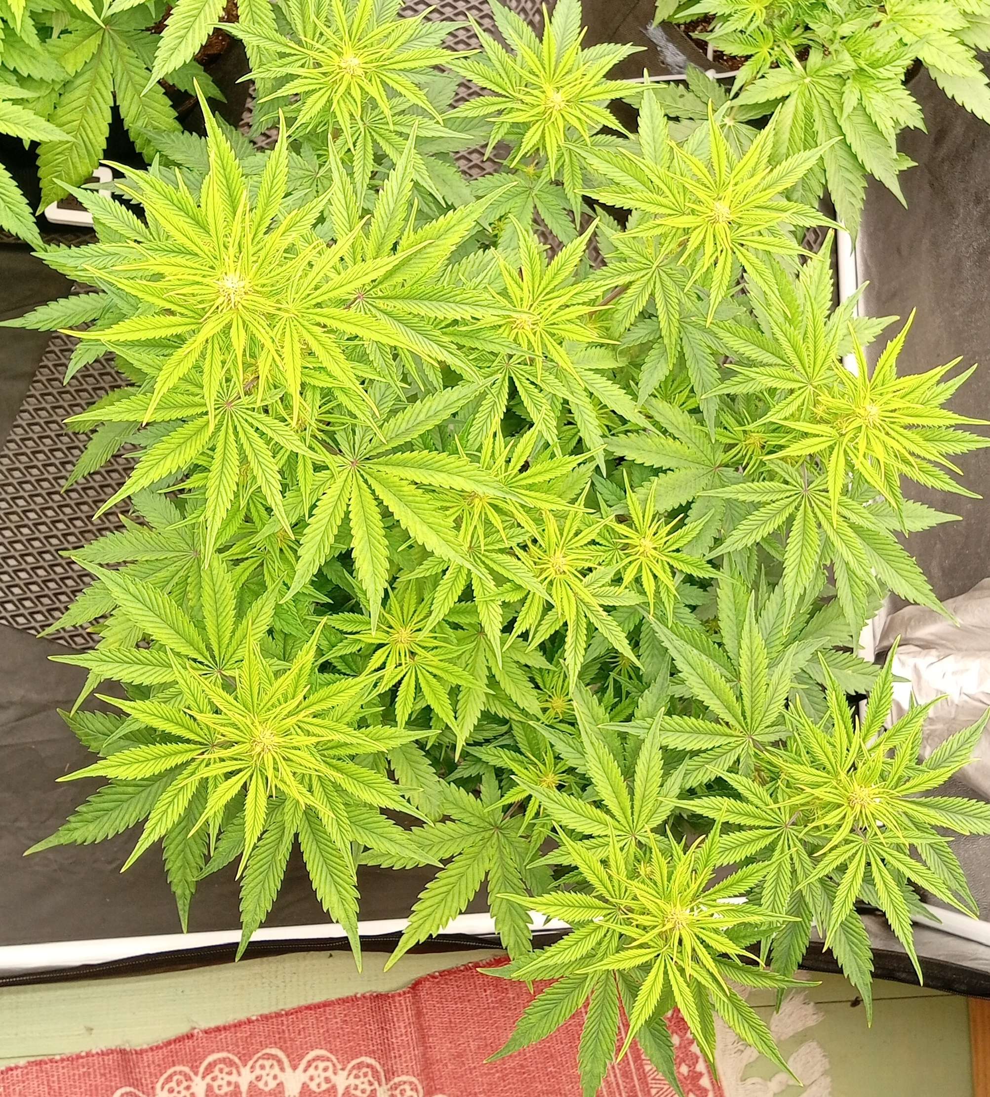 Шишки надуваются, трихомы серебрятся. В целом, выглядит и ведёт себя, как цветущий куст конопли)