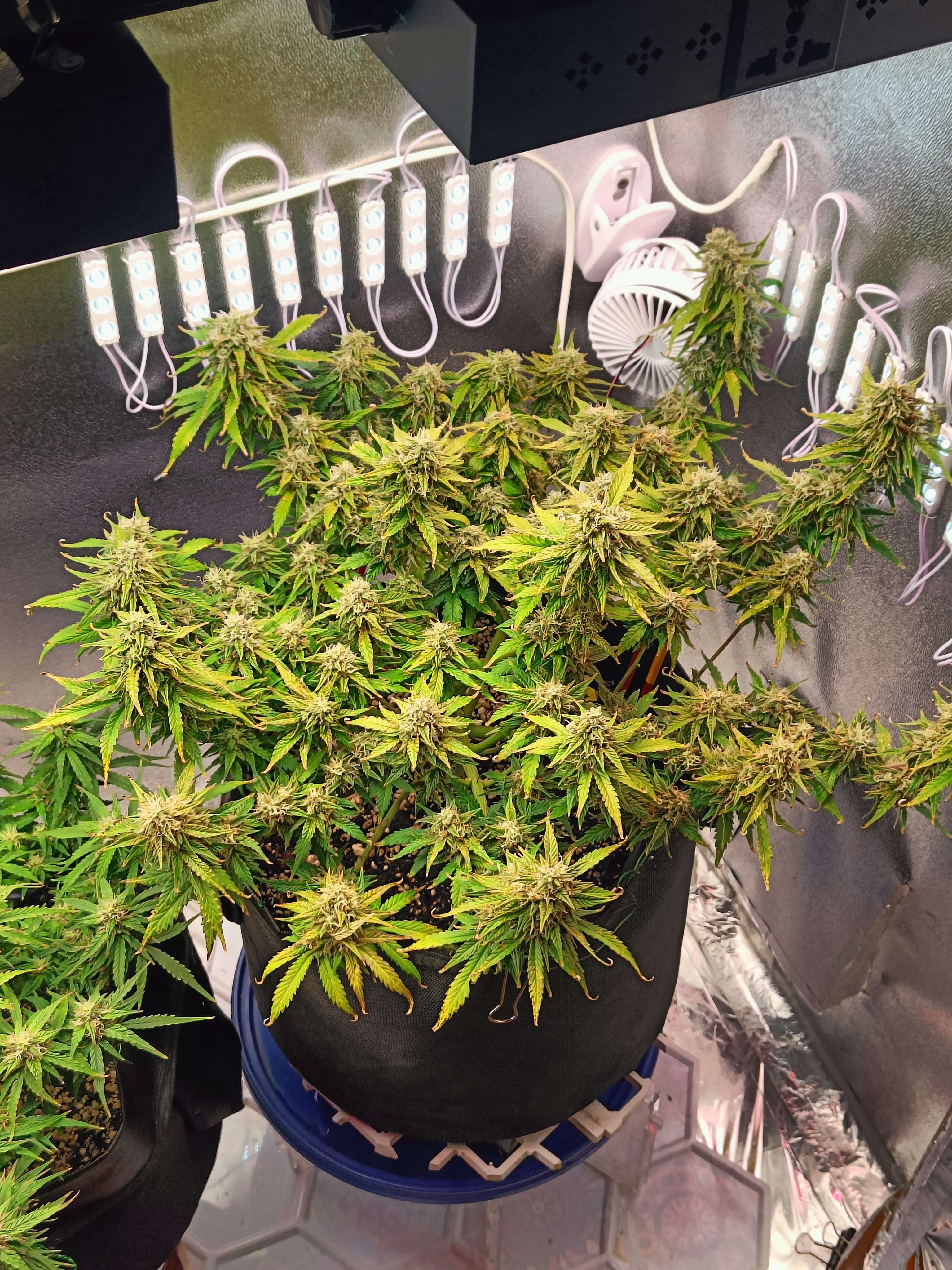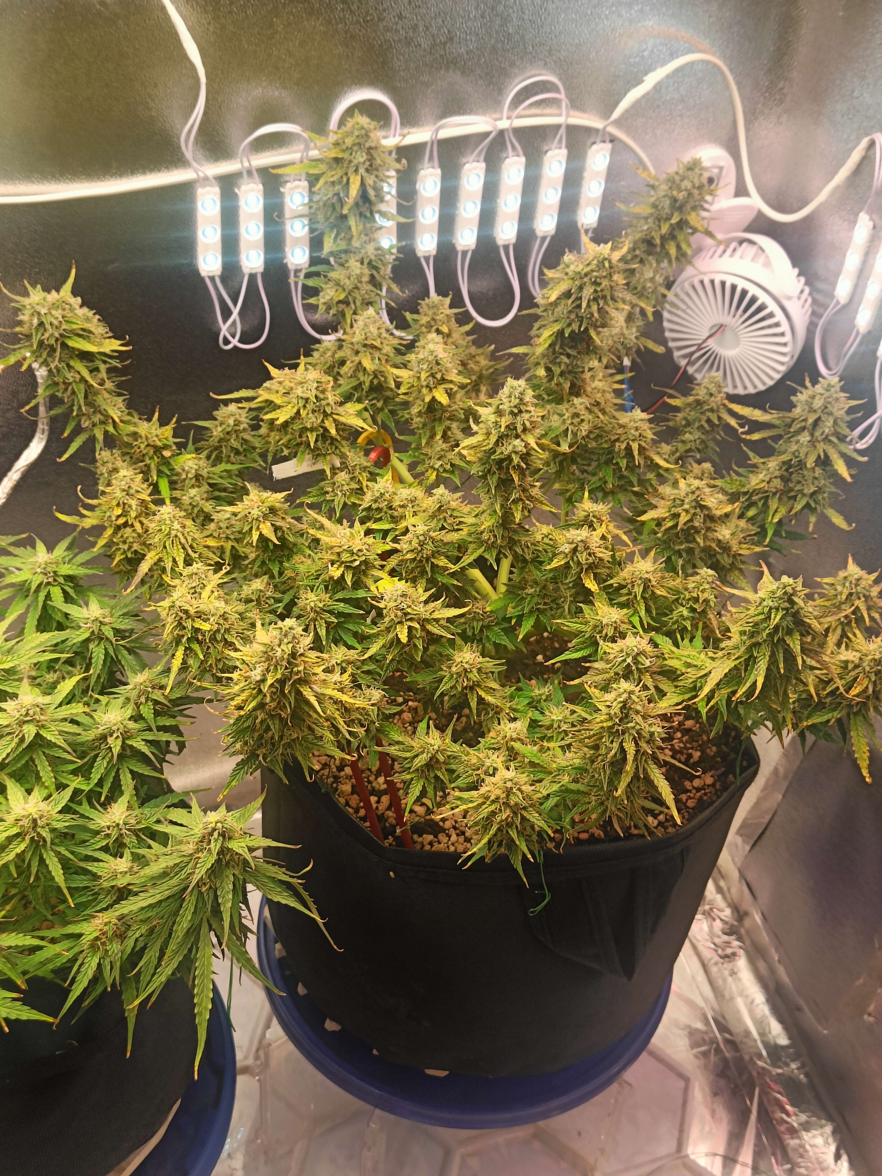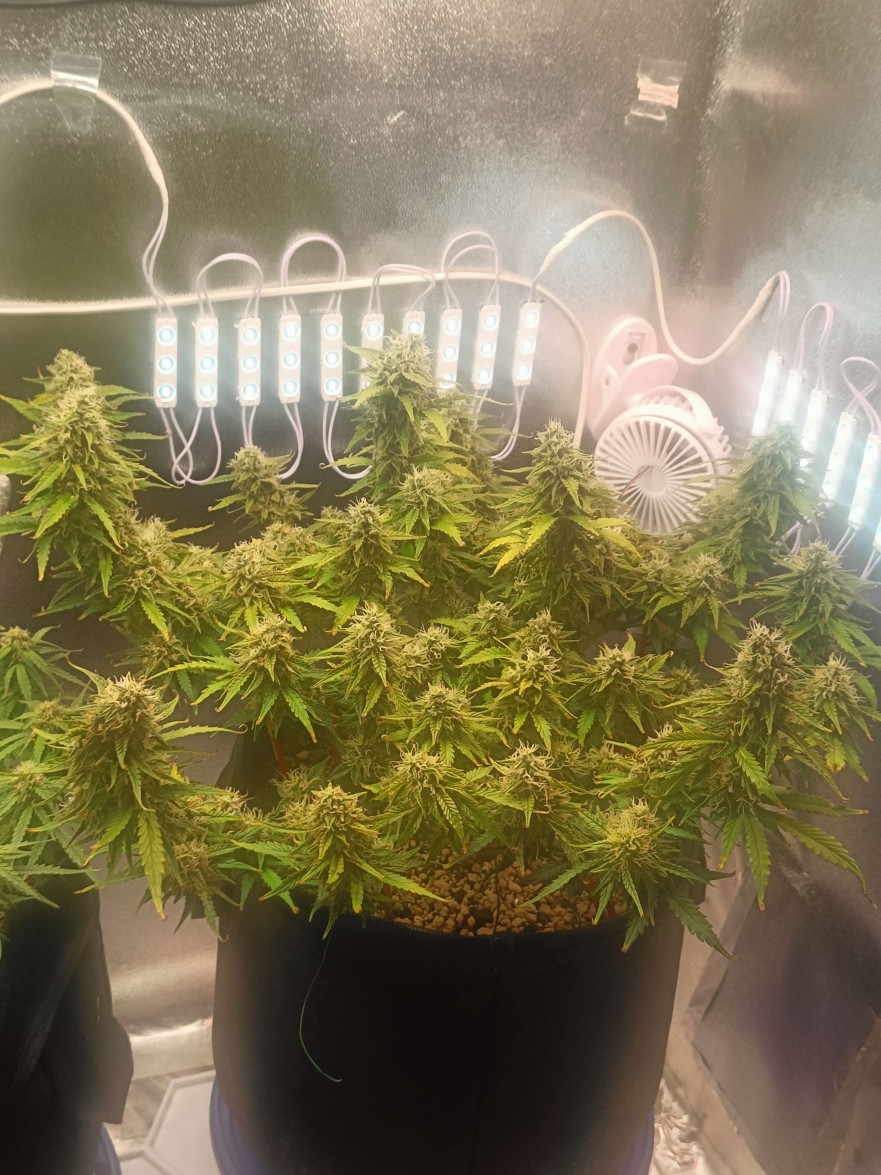 65 День Утро, Всем доброго времени) вообщем сегодня отключали свет ,благо она спала, но потом дали ,все включилось кроме вентиляции, она от датчика с термостатом работает,вот ладно исправлю, так вот , получается она получила стресса, вот плюс вчера подрезал Бэкбилдинг, вообщем трихом стало по всем девчонкам ,в несколько раз больше, прям усеяна) полил ещё) пускай набирается сил)