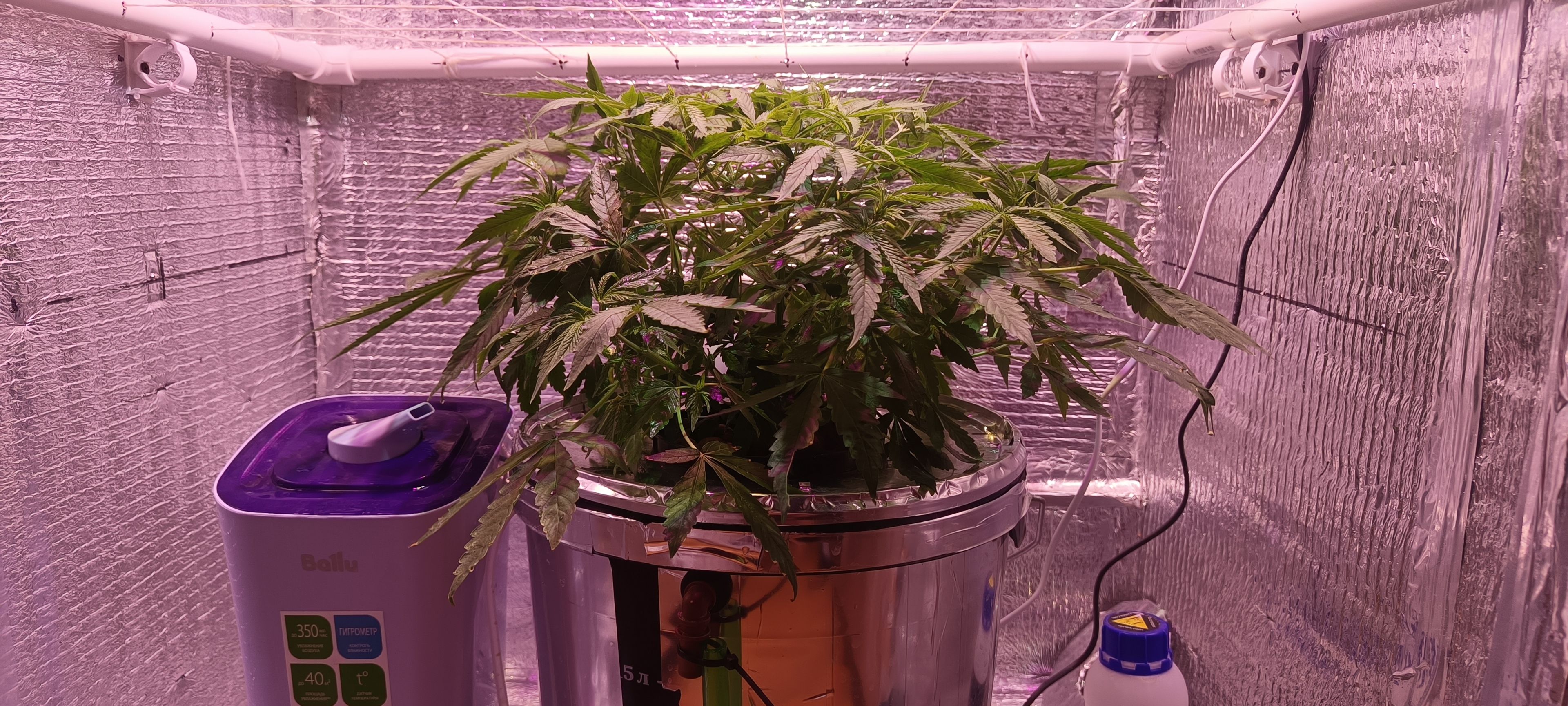 За прошедшие две недели куст значительно подрос. Я как и планировал сменил удобрения. Теперь раствор более стабилен и предсказуем. Так же не однократно прорежал, удалял тонкие бесперспективные ветки и большие листья. Некоторым веткам дал шанс, но сомневаюсь, что они его реализуют.