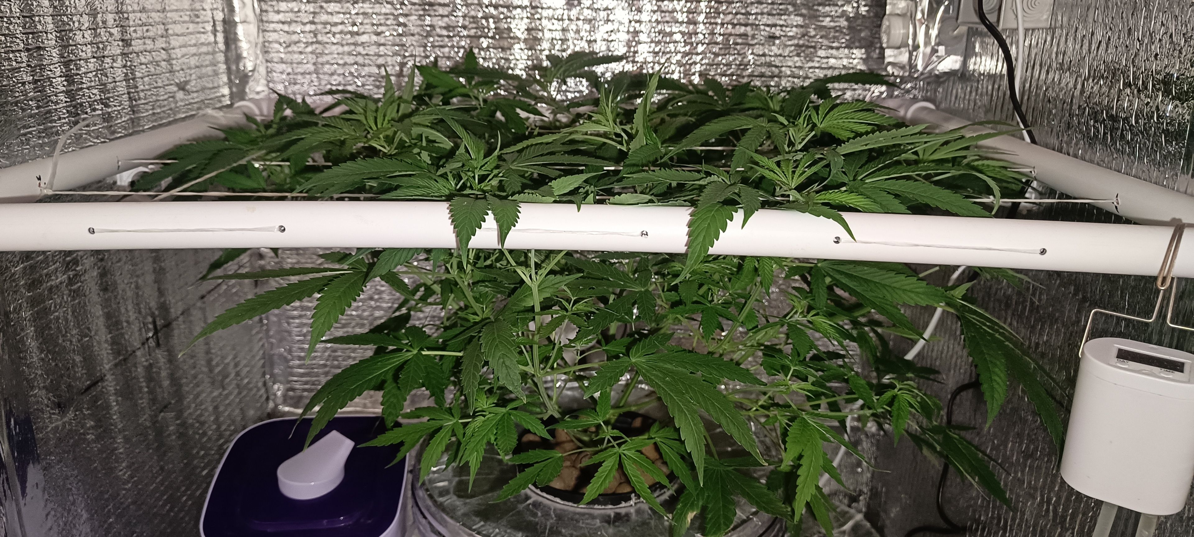 Но самое главное, что послезавтра переведу на цветение. На это уйдет пару недель и как раз, за это время, ветки оптимально вытянутся над сеткой.