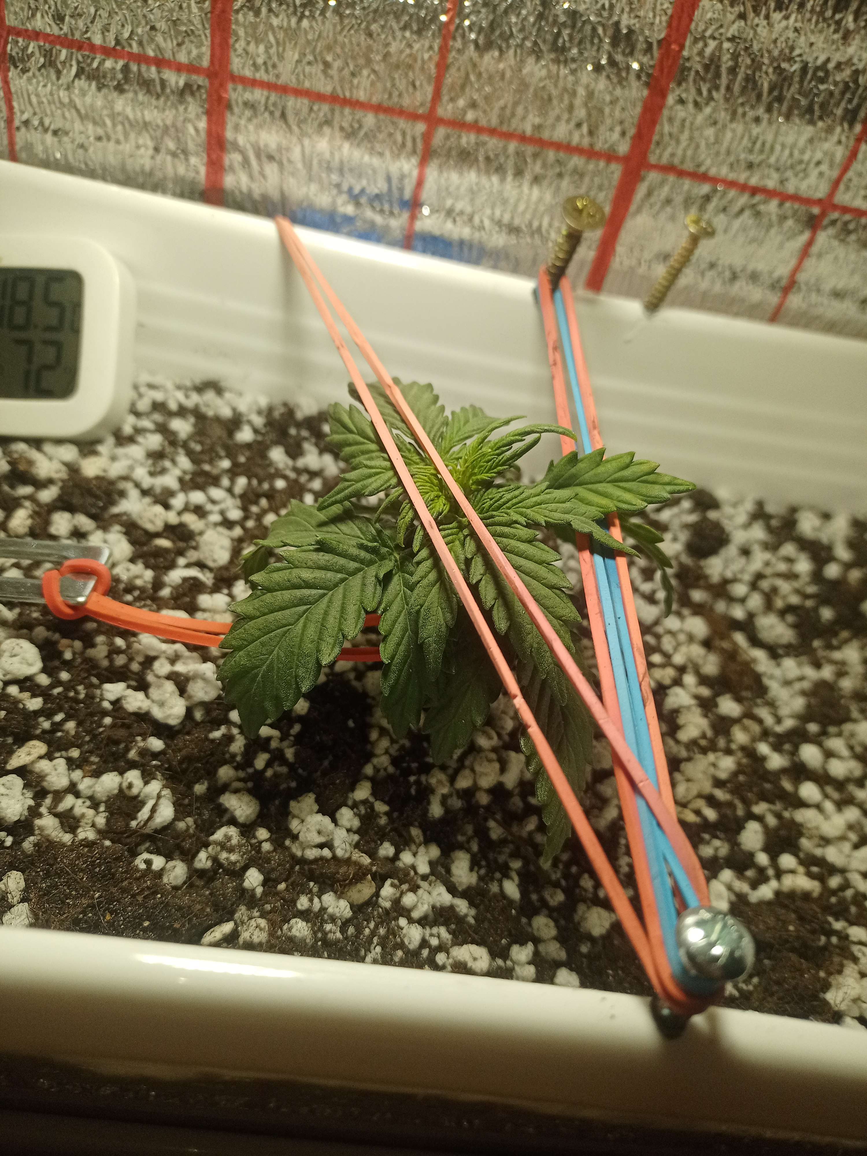 10.11 сделал лст стянул растихе ебало концелярский резинками ограничил рост вверх, думаю дальше видно будет появился небольшой запах 11.11 Какой то пропидырь отключил вилку с резетки в подвале, из за чего кустик стоял в темноте примерно сутки. Сделал небольшую перестановку в боксе, переделал лст