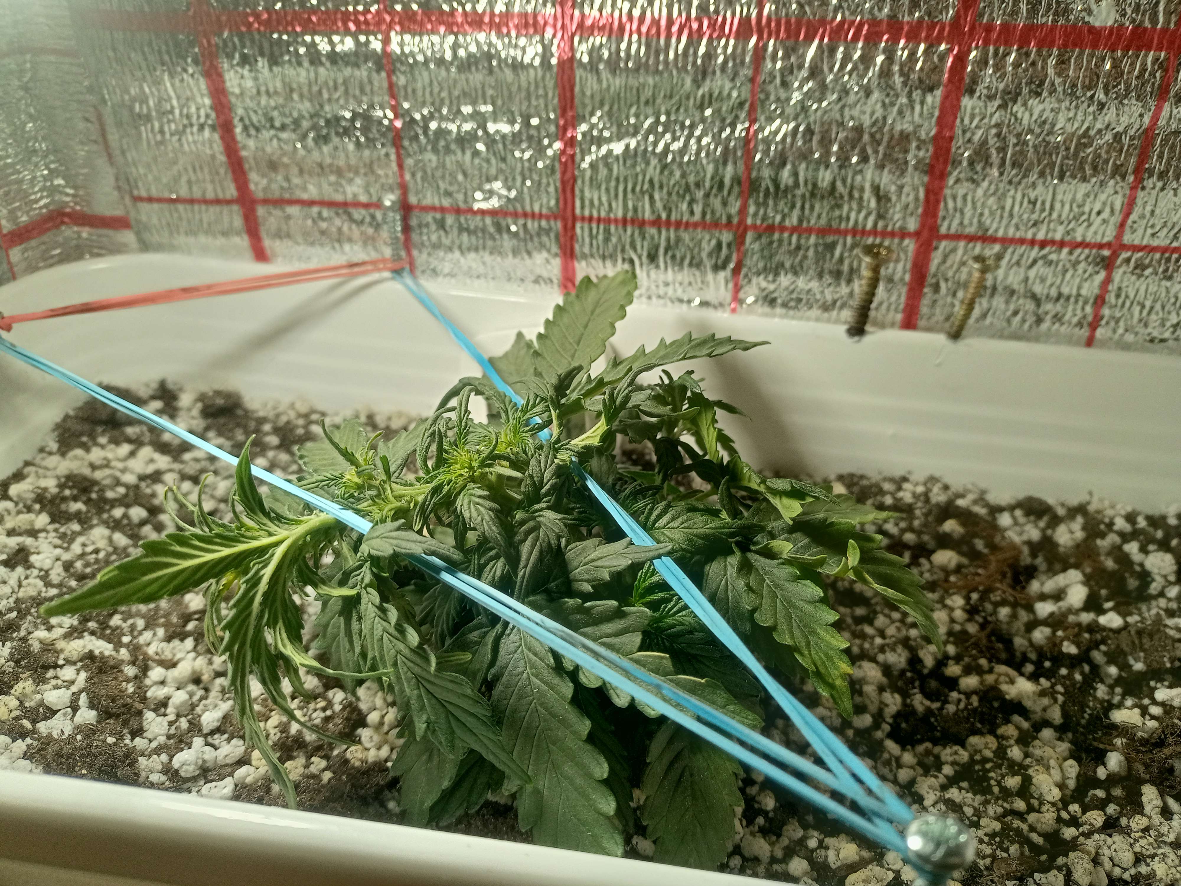 Да бро зря рост в высоту ограничил она же даже не выросла чтобы ограничивать. Сорт быстрый поэтому на веге ему надо дать вырасти, до 5 этажа вообще не нужны удобры да и тренировки не нужны до 5 этажа ато только тормоза в росте. Короче карлик получился, с 3л почвы идеально 30г собрать что соответствует паспорту сорта, но тут дай бог 3г будет. И перебои со светом мне кажется не при чем, так и должна зацветать на 20-27 день плюс потом выстрел на цветении должен пойти и как раз набрать необходимые размеры. Макушку пригнуть чтобы боковые ветки в рост пошли да и всё.... По свету вроде в порядке все потому что междоузлия не большие, ну ладно будем смотреть