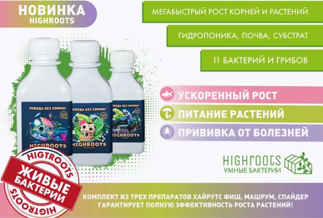 Следили, следили, да видимо не уследили. На 10-й день от роду, решил полить нашу Золушку вот такими штуками - Комплект удобрений HIGHROOTS (FISН, MUSHRОOМ, SPIDER):