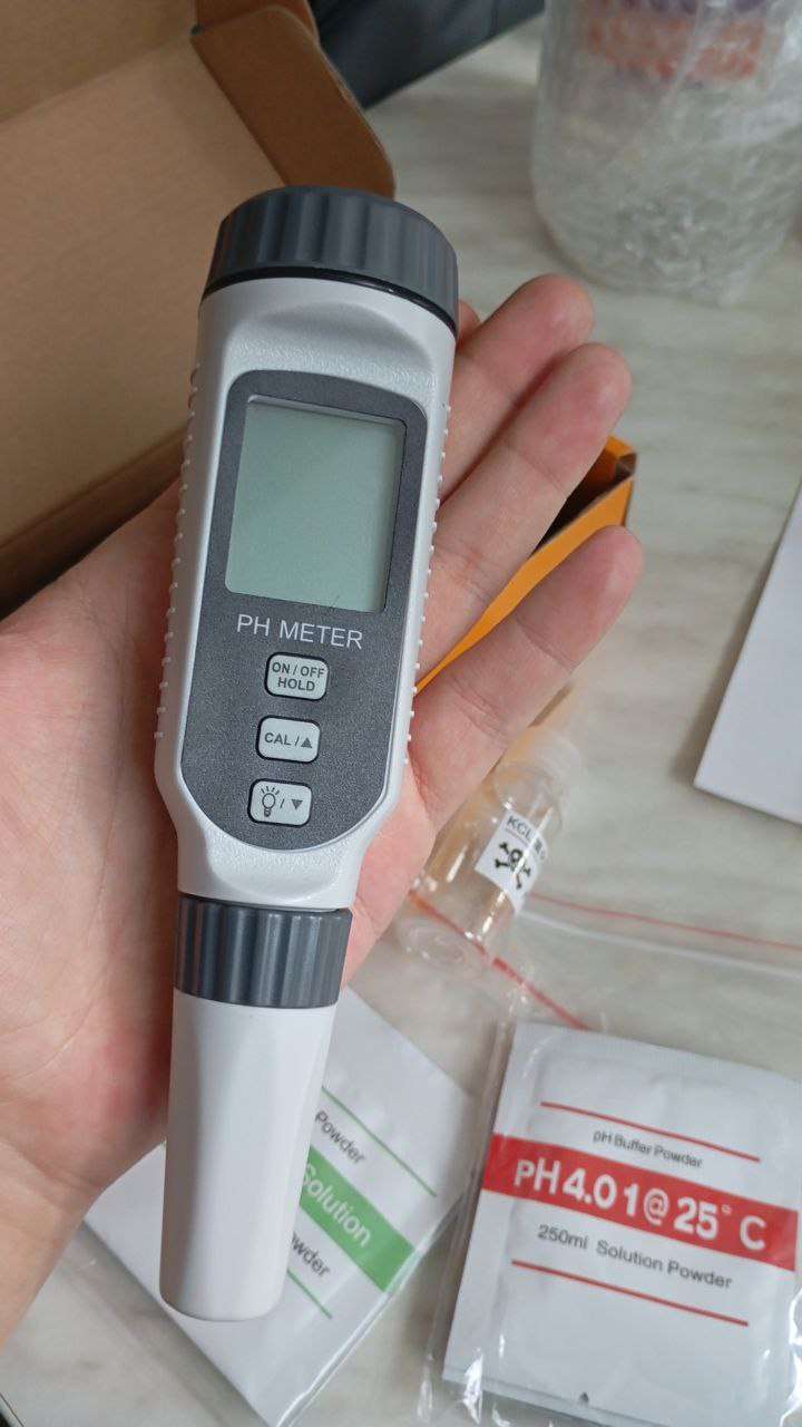 Начался день наш с полива, сделал воду с CalMag, 1.мл/л, ppm 260, PH попытался выставить 6.3, предварительно откалиброван китайский жёлтый урод по 1 точке 6.86