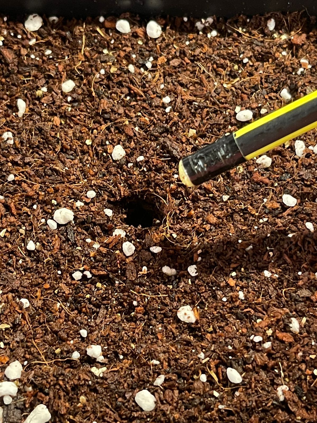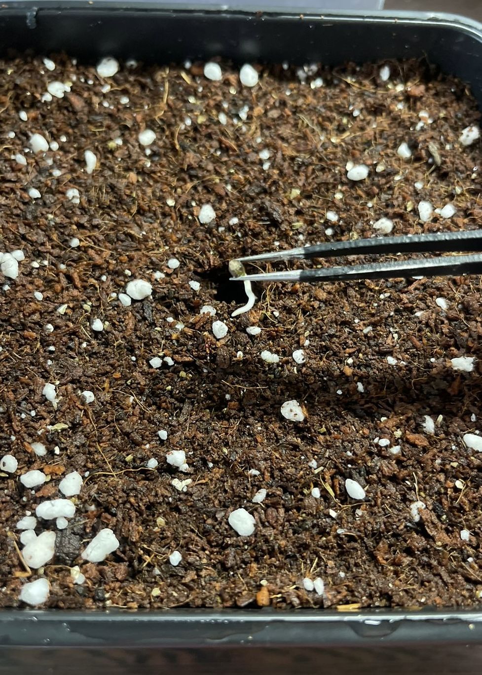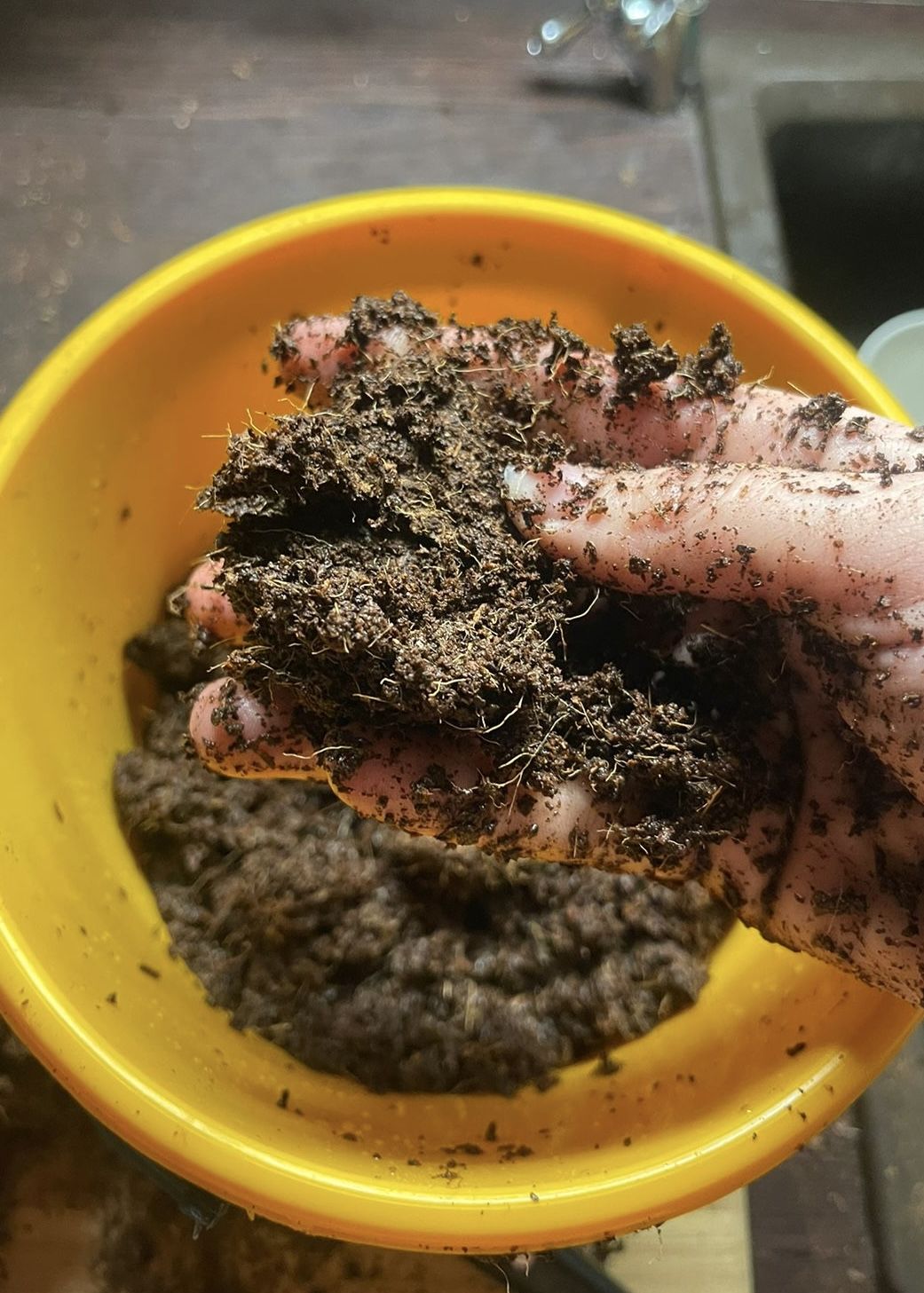 Через несколько часов , отжимаем кокос или через сито даем стекать , добавляем промытый/замоченный перлит , перемешиваем и укладываем в горшок . Чуть ближе к наполненности горшка делаю лунку и туда засыпаю Микоризу