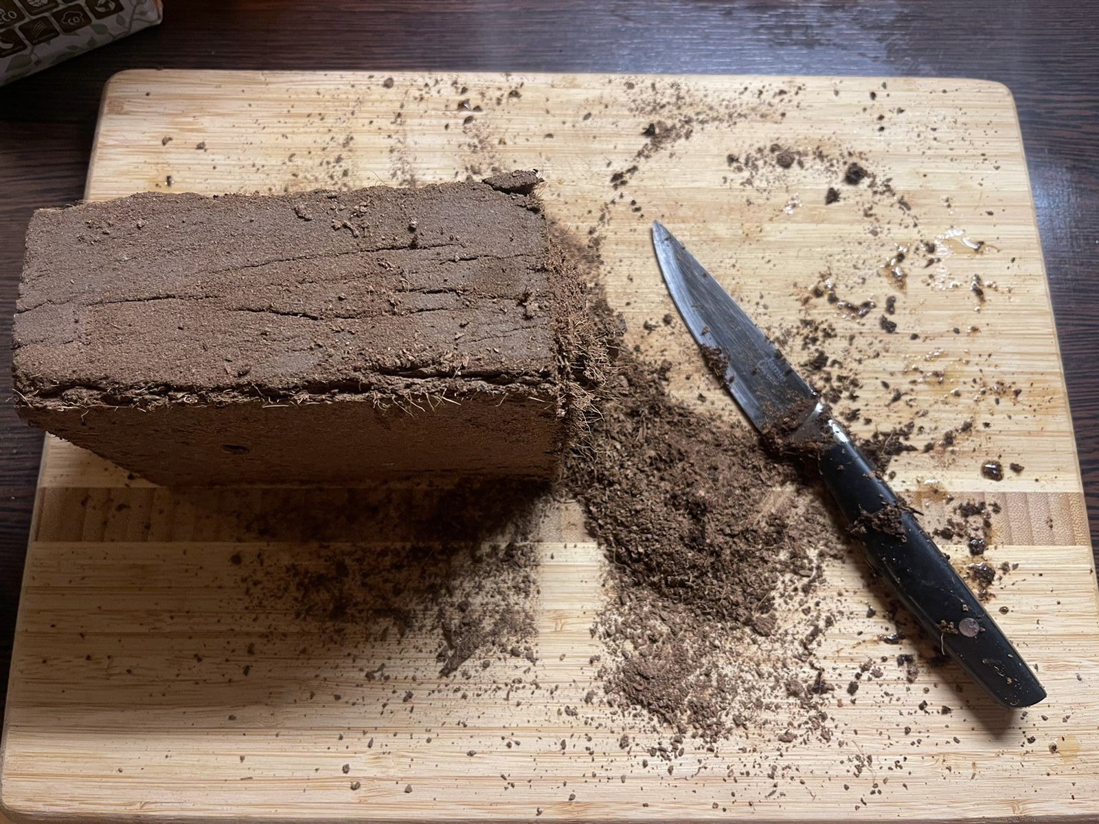 Доехав до ближайшего гроушопа, куплена Ugro riza брикет на 11 литров. Сухой кирпич🧱 Отрезала от него четверть и замочила в 3 литрах воды.