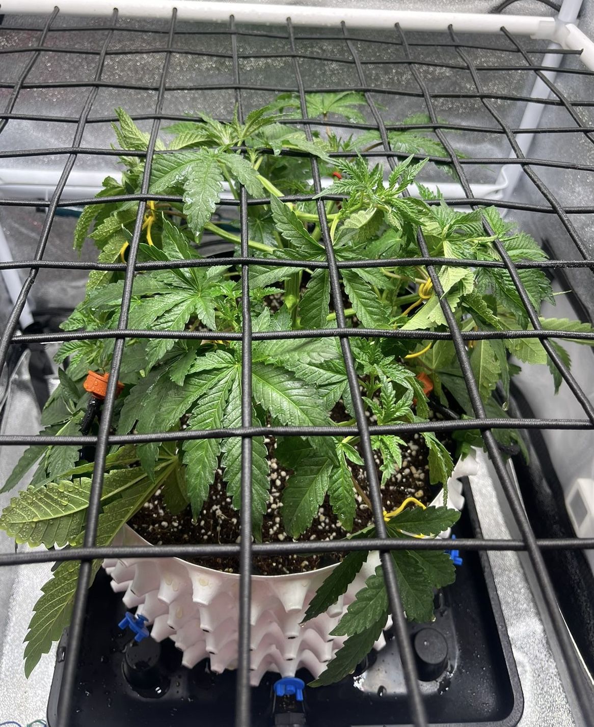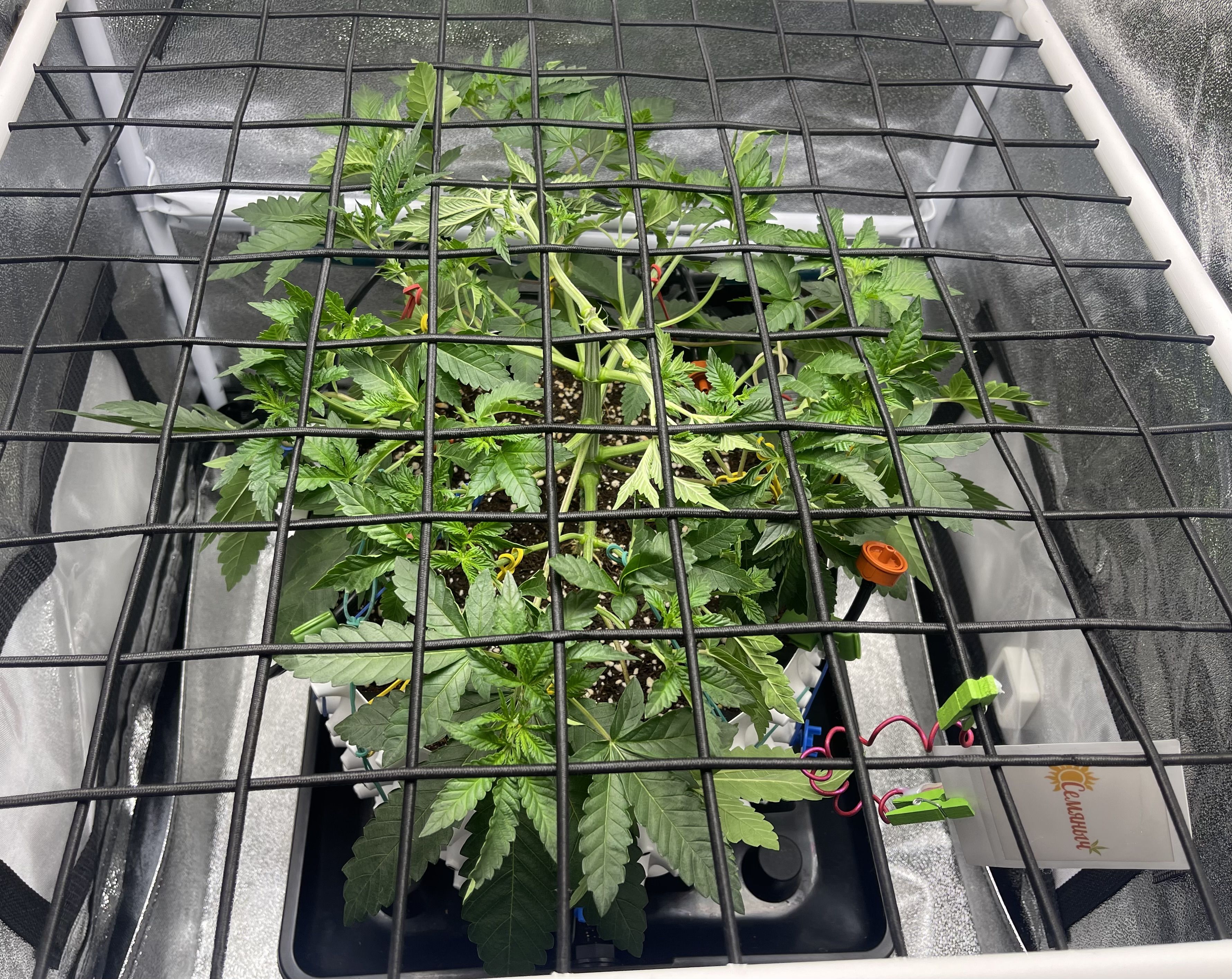 На неделе поставила сетку , дополнительно к тренировкам Lst , Дефолиации - тренировка называется Scrog . Для индики она используется редко, самый лучший вариант для сетки - это сативные сорта! Чтобы контролировать рост . Поэтому не рекомендую, либо вегу затягивать , чтобы заполнить все пространство . Я ее до этого грова никогда не использовала, поэтому хочется попробовать, понять, что это и как.