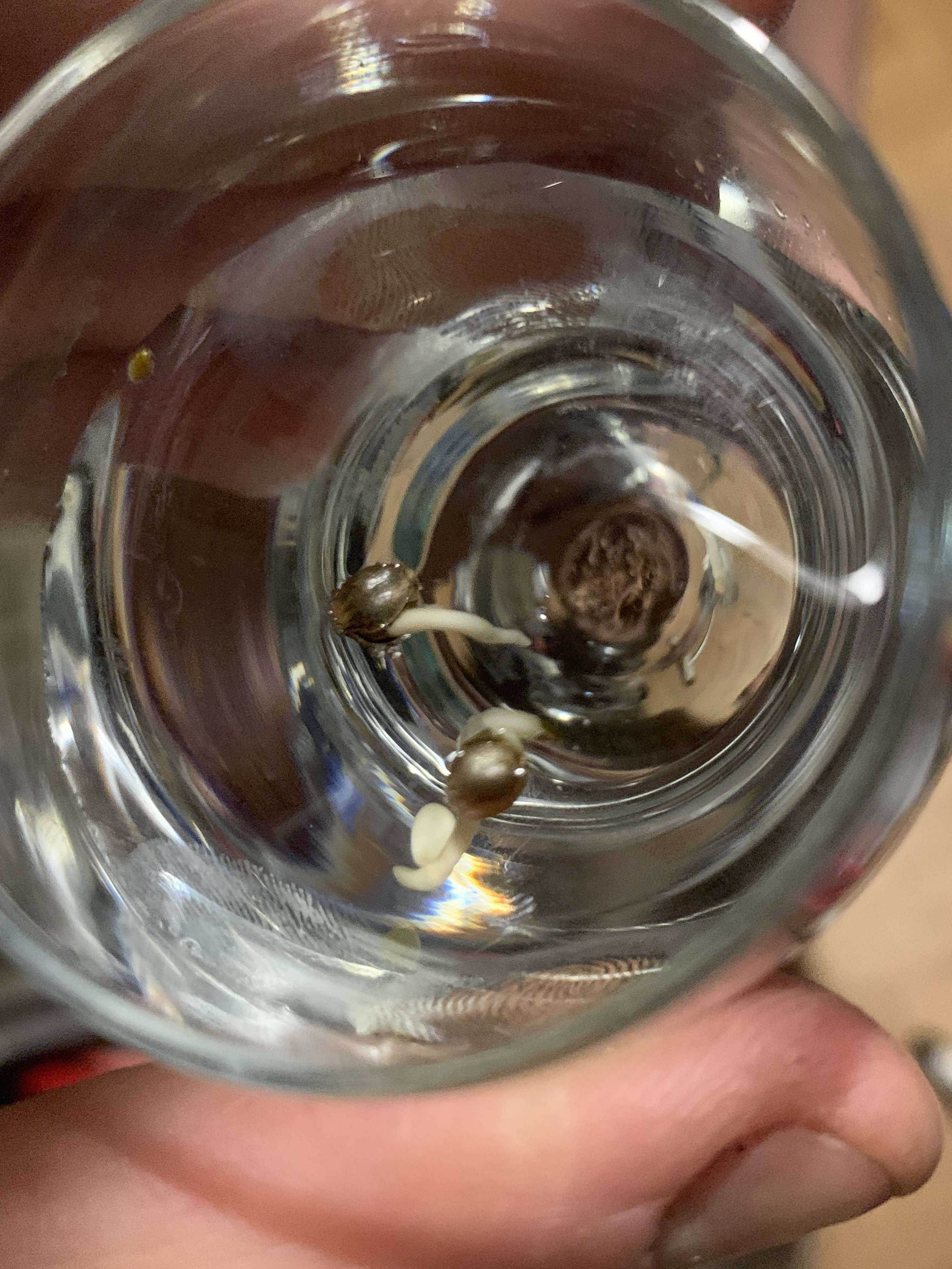 и тут после 24 часов молчания, глянула еще через 12 - а один росток сразу в белом цвете вылез полностью (я вообще такое не люблю, доселе это не приводило к жизнеспособным растишкам)