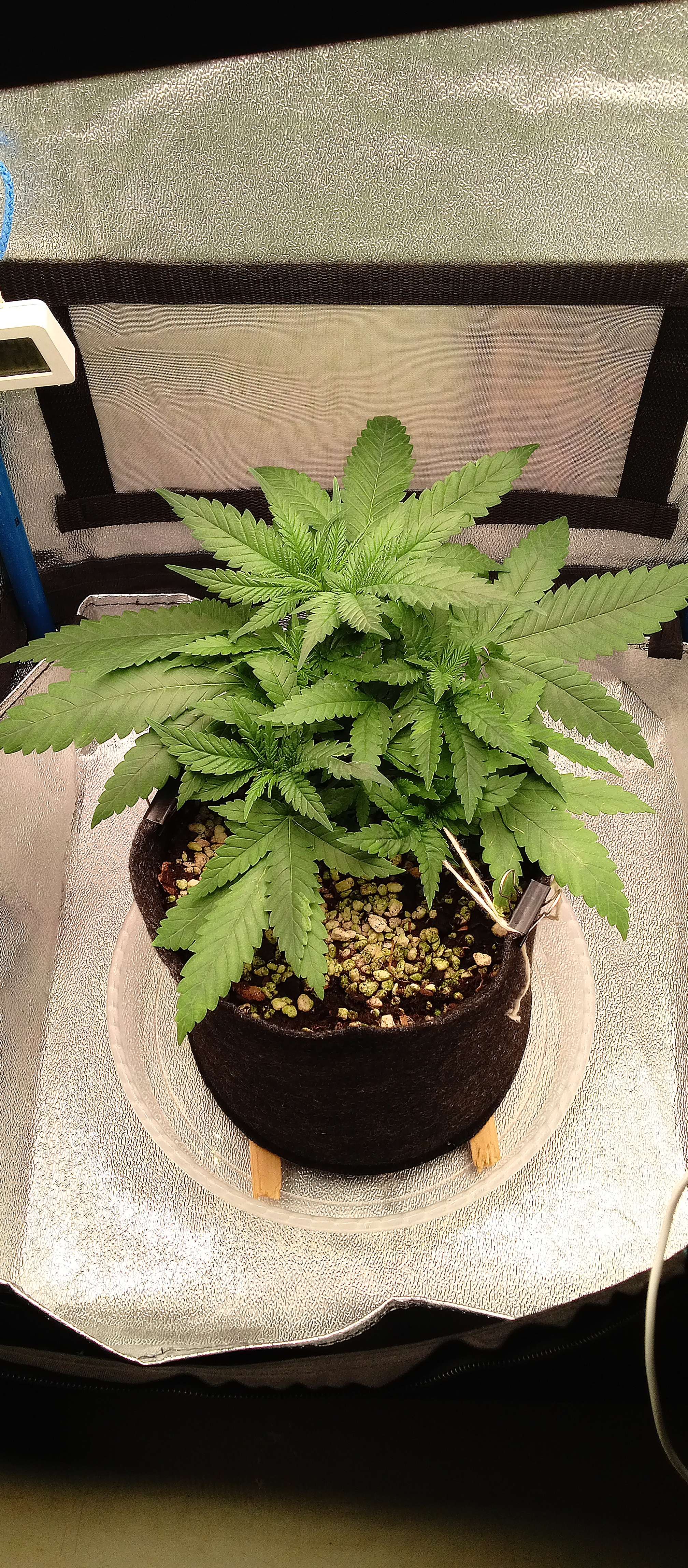 15.08. Подросла и всё больше распушилась. Честно не ожидал, не ожидал. Хер подлезешь, не даёт сделать LST. Отпустил все верёвки, пущяй так растёт. Потом дефолиацию сделаю.
