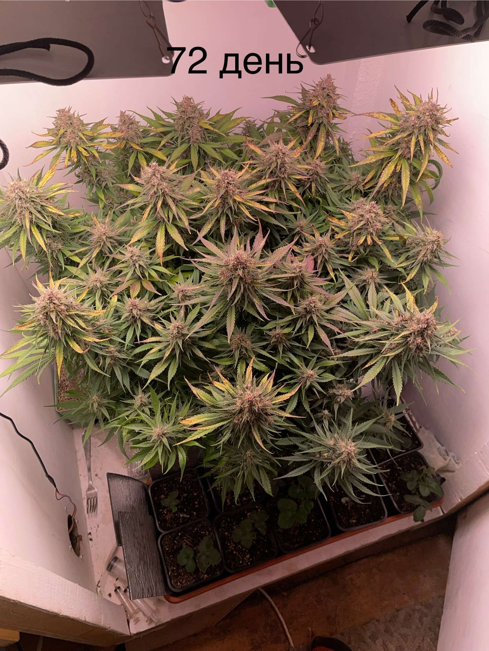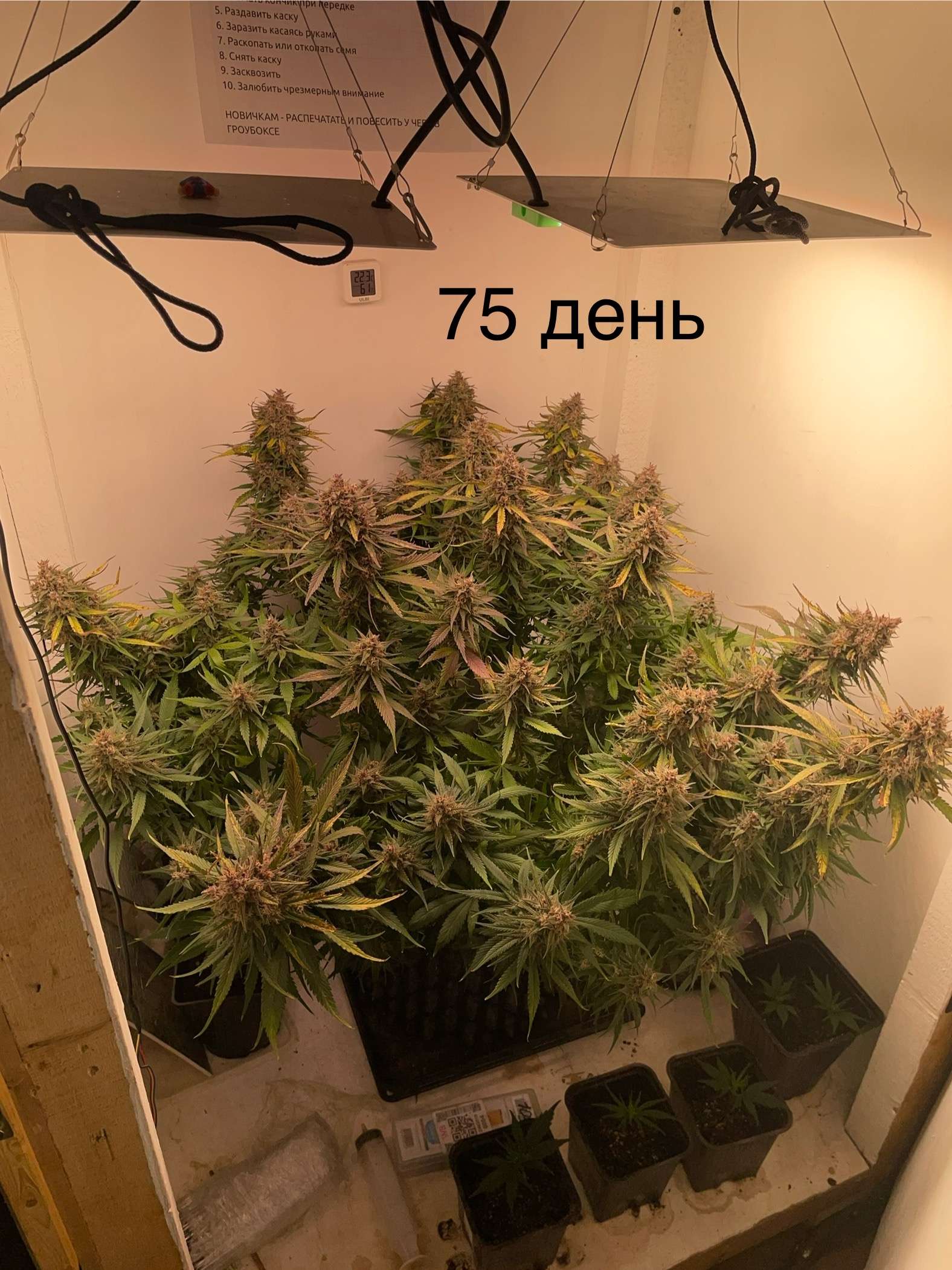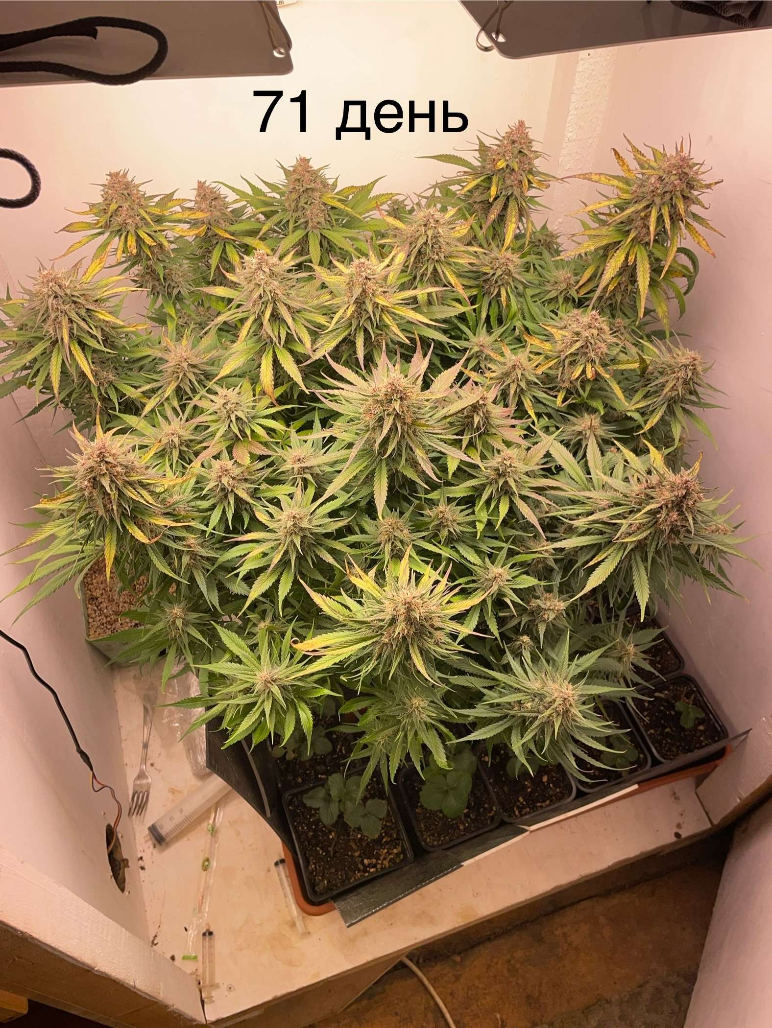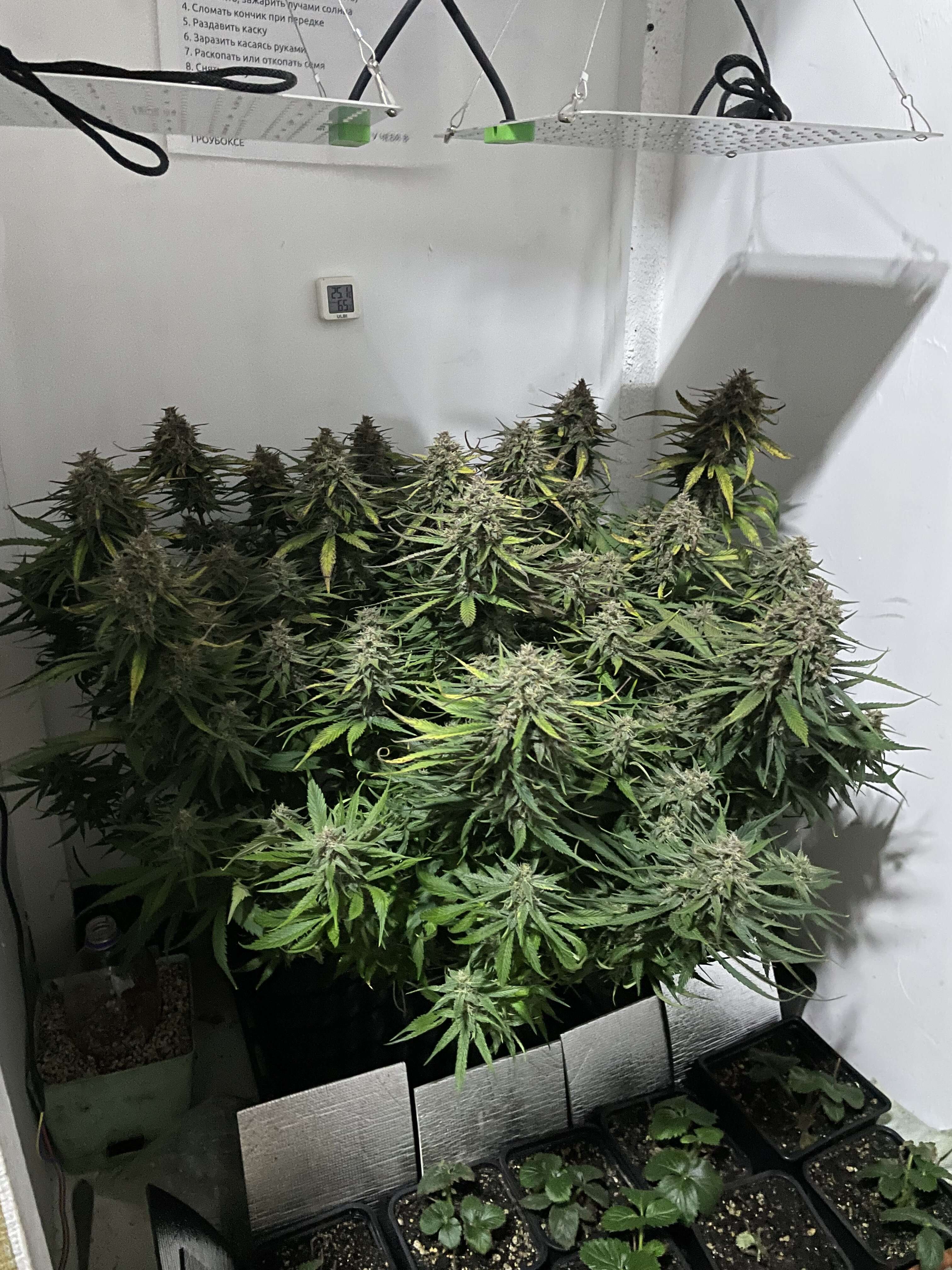 Что у нас не сегодняшний день, да особо не чего собрал урожай листья не красивые тут закинул фото до стрижки, в коменты к ну до и после(но чет не особо разница есть), открыл свет к нижним шишам…
