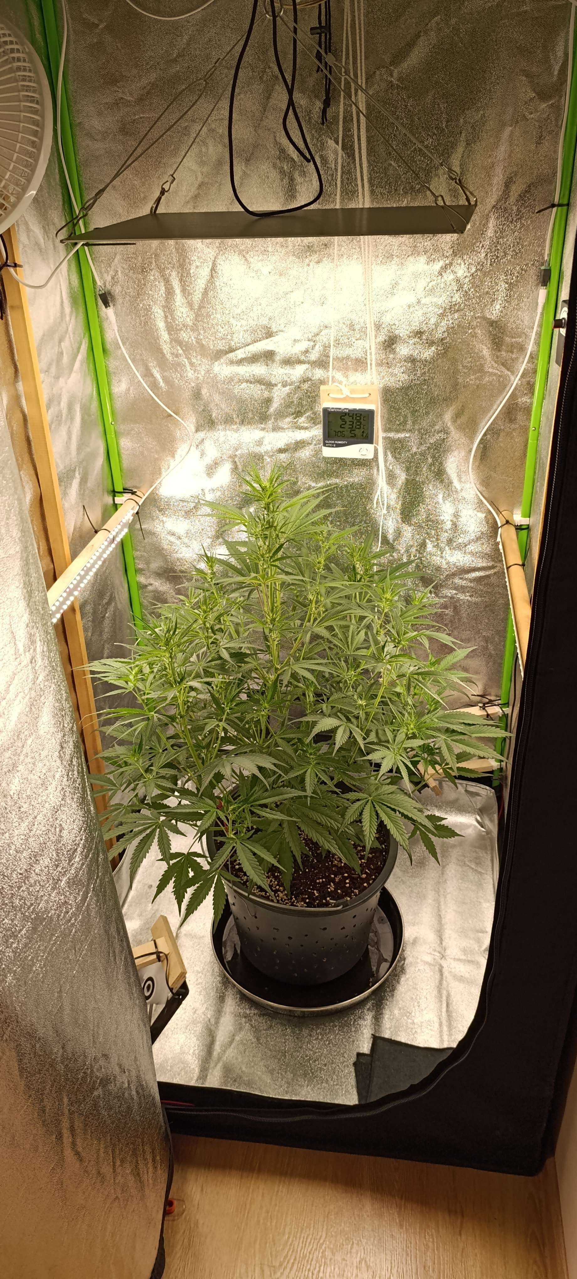Полив вода+CalMag 3,5 литра. Дренажа ни капли. Ну и аппетит, уже 3,5 литра за сутки выпивает.
