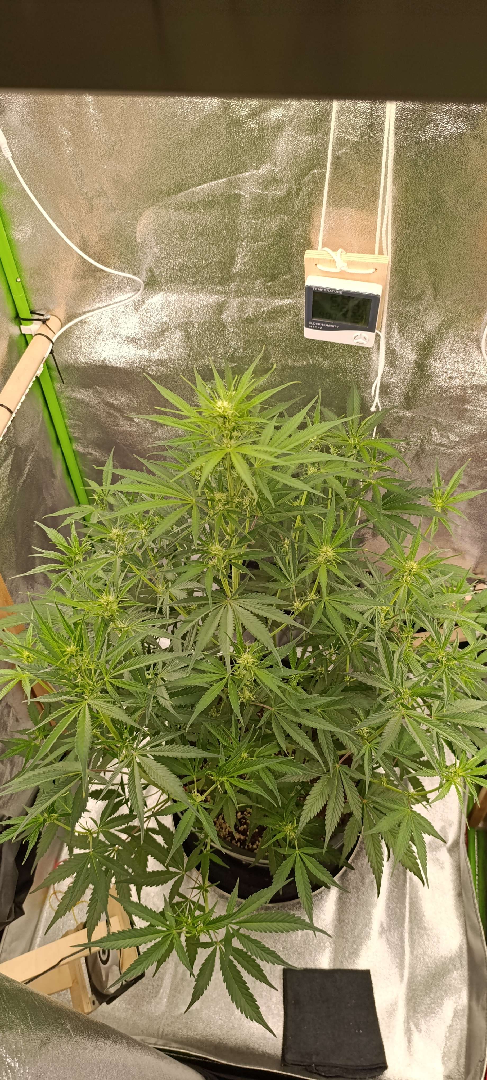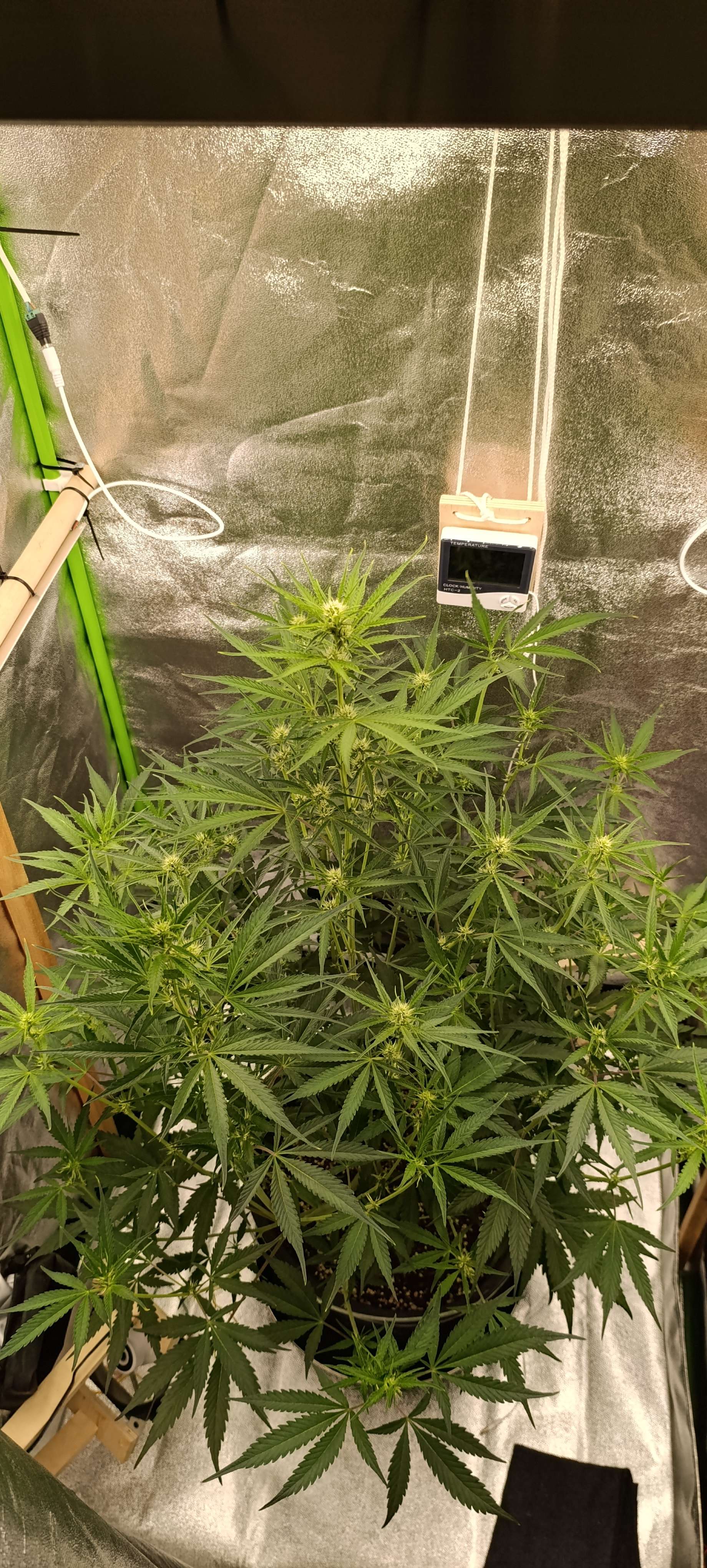Полив компотом 3,5 литра. Дренаж грамм 200. Рост уже 80 см. Свет 41000. Потихоньку подрезаем листву.