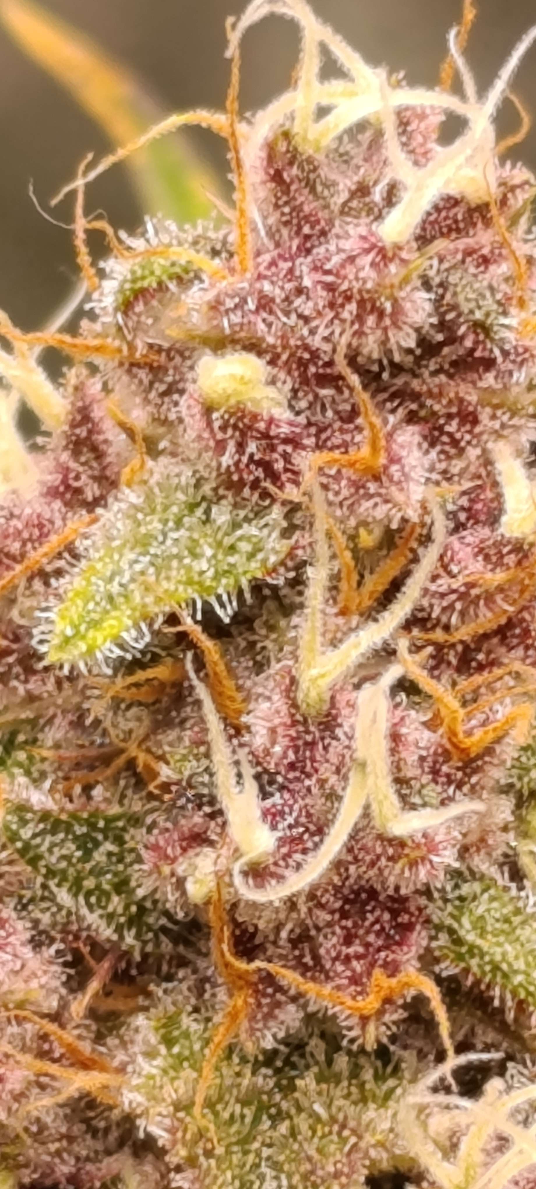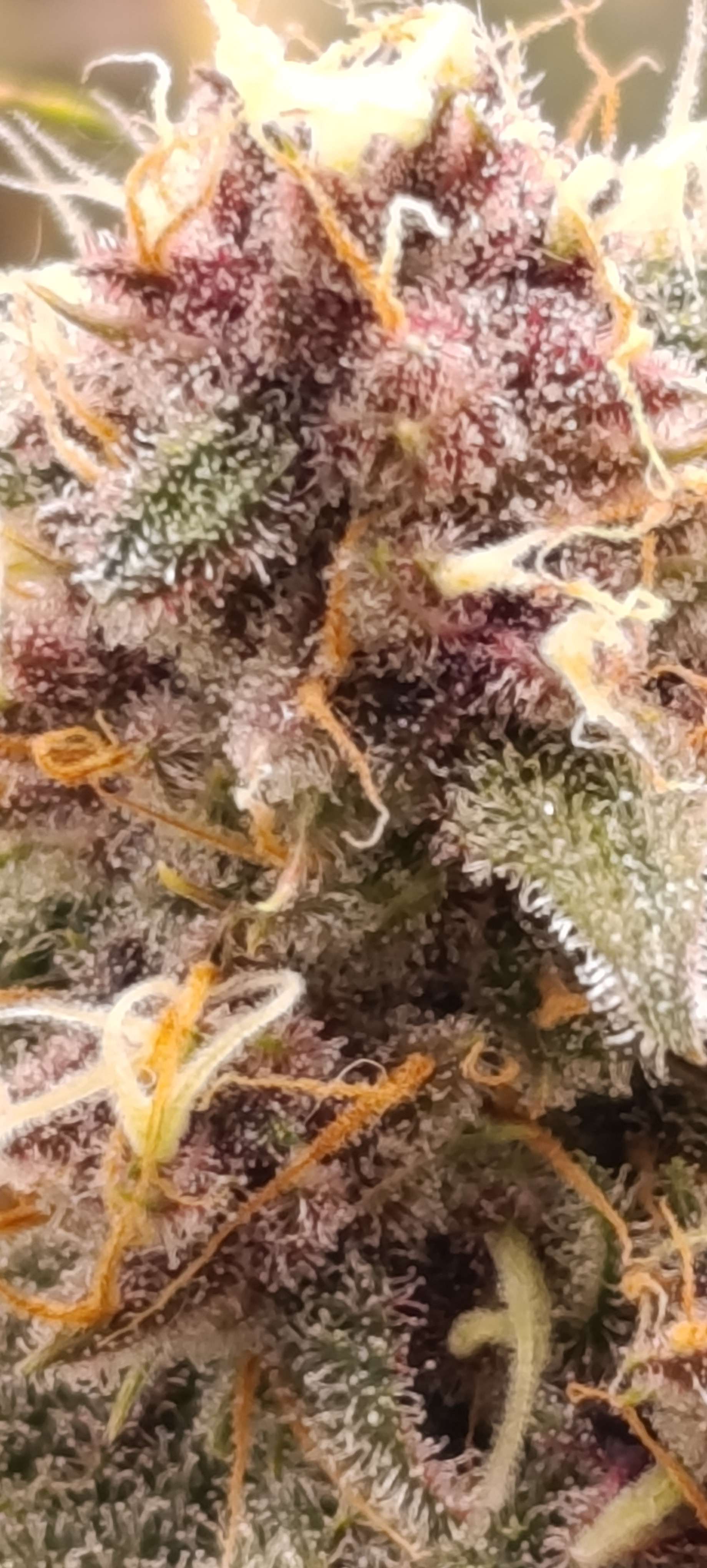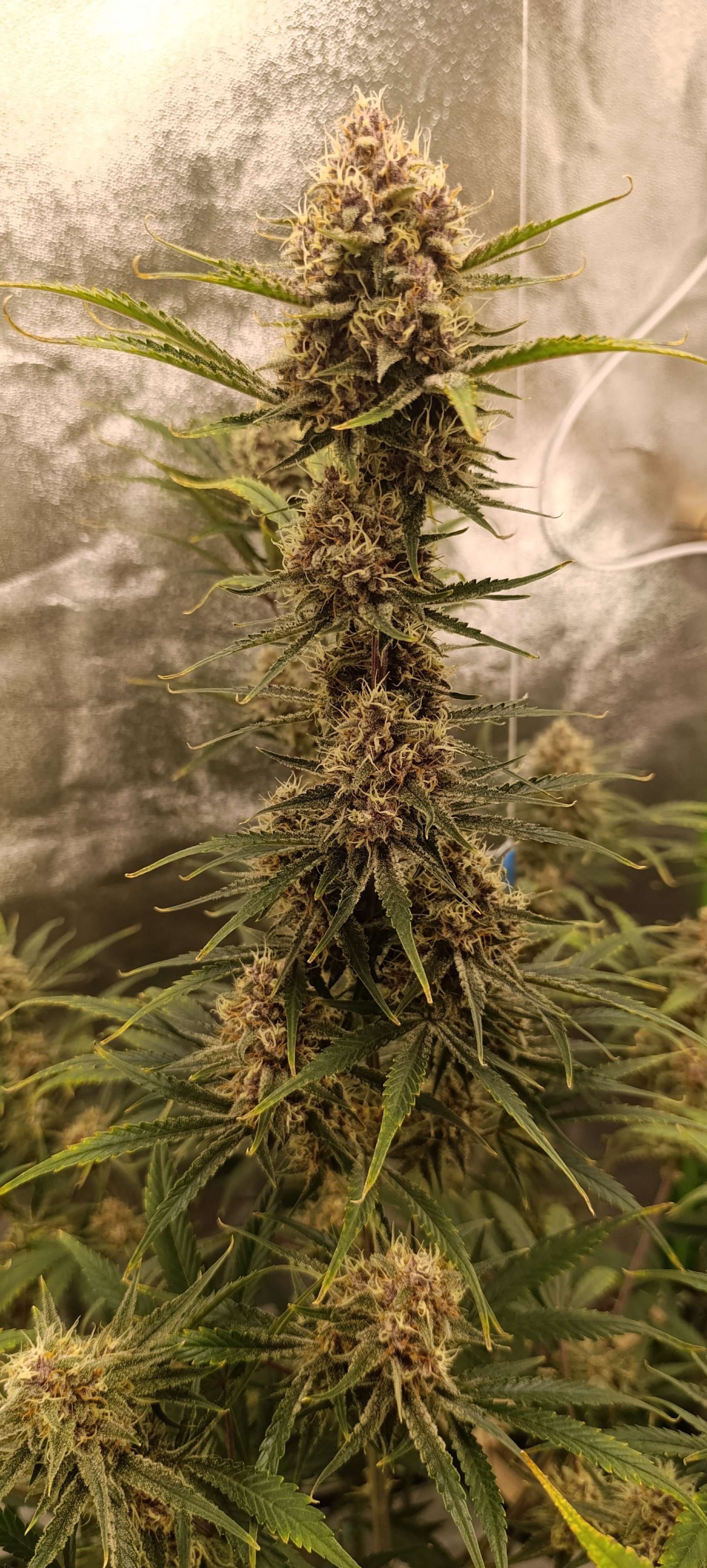 Шишки небольшие, но тяжёленькие. Две колы даже пришлось подвязать, как помидоры, а то душистая смолка оседает на стенке бокса)) Полив 5л компота, полив длится пару часов. Дренаж 0,5 литра, Ph 6,49. Свет 51000 Lux.