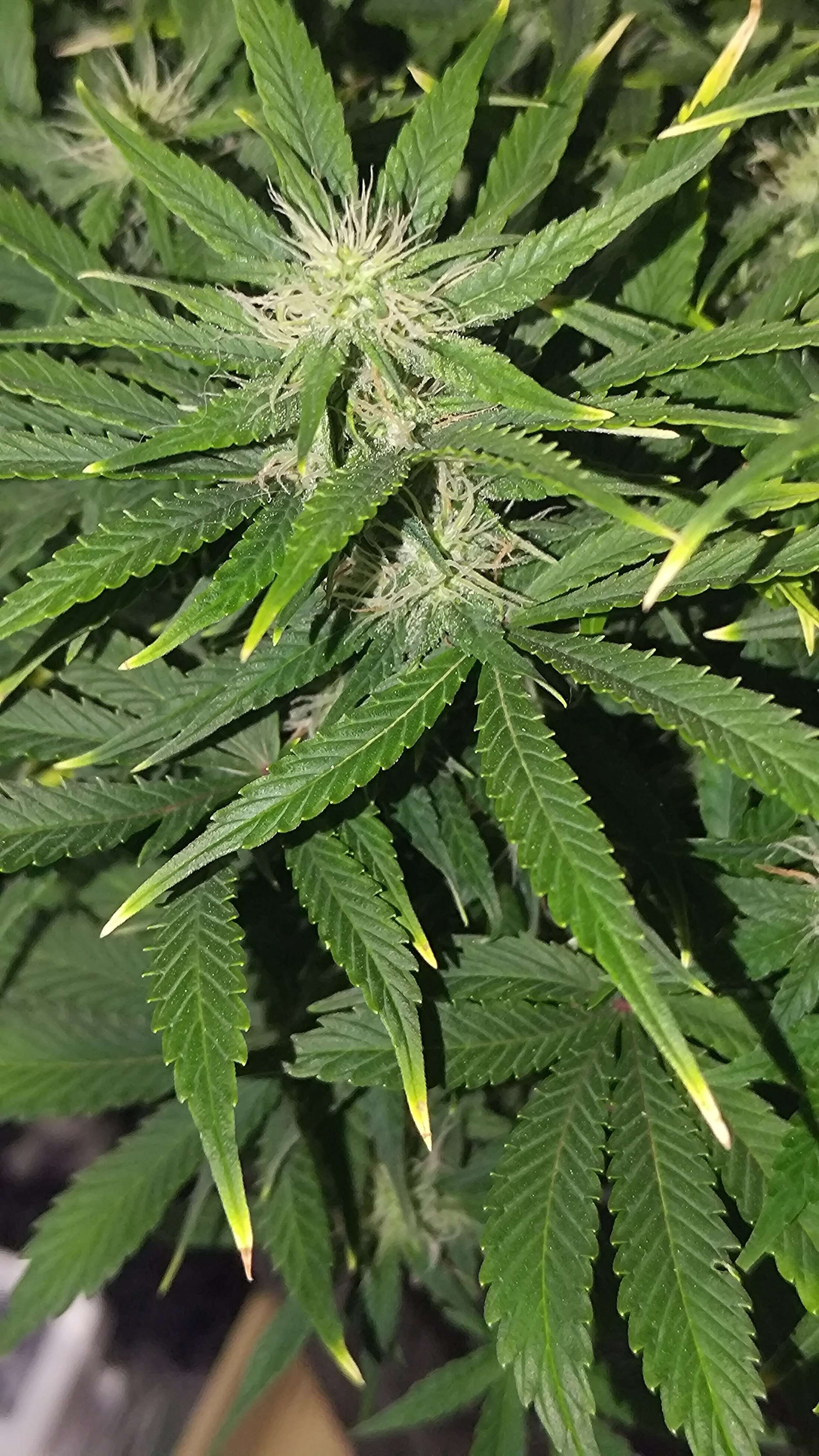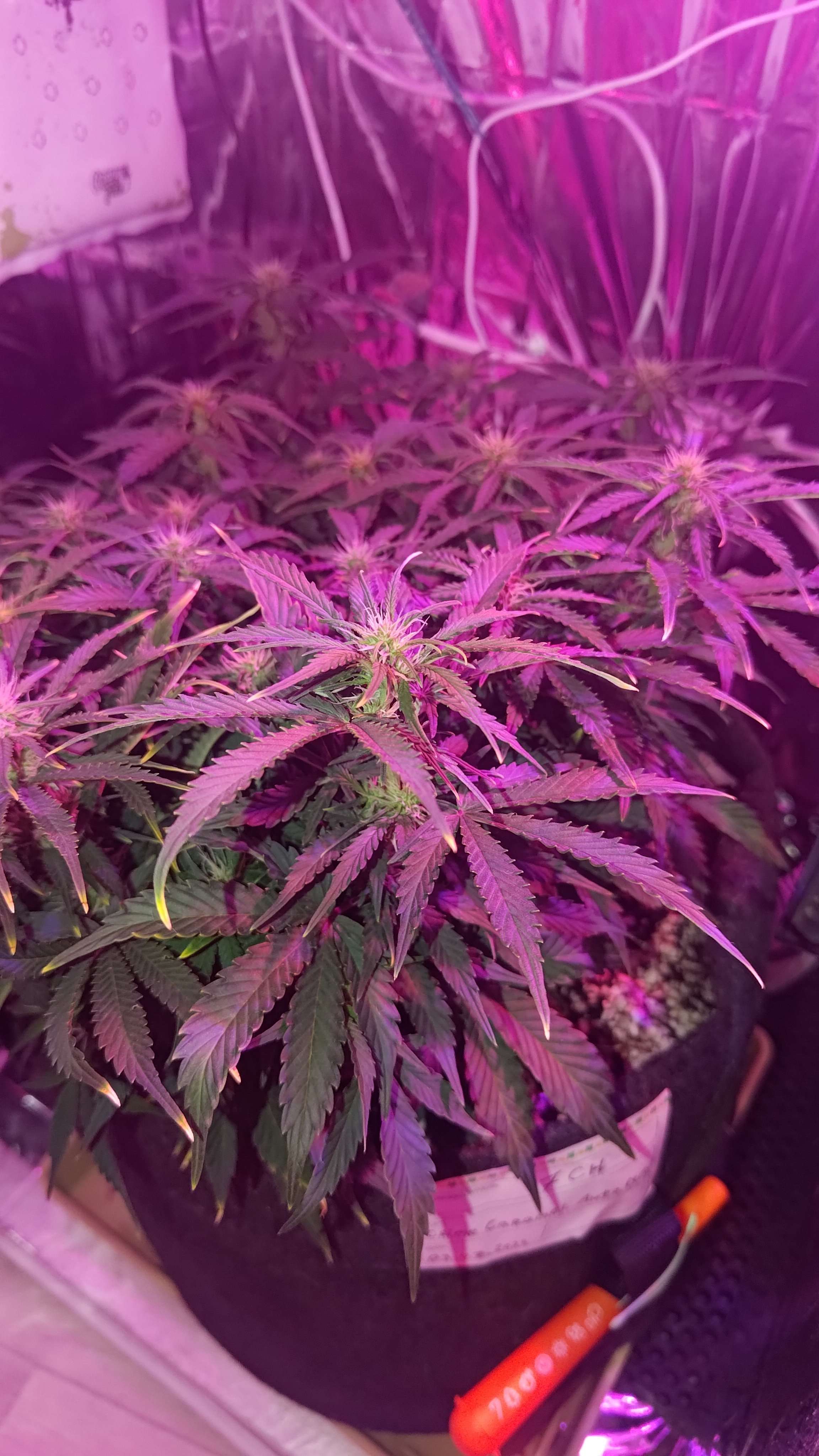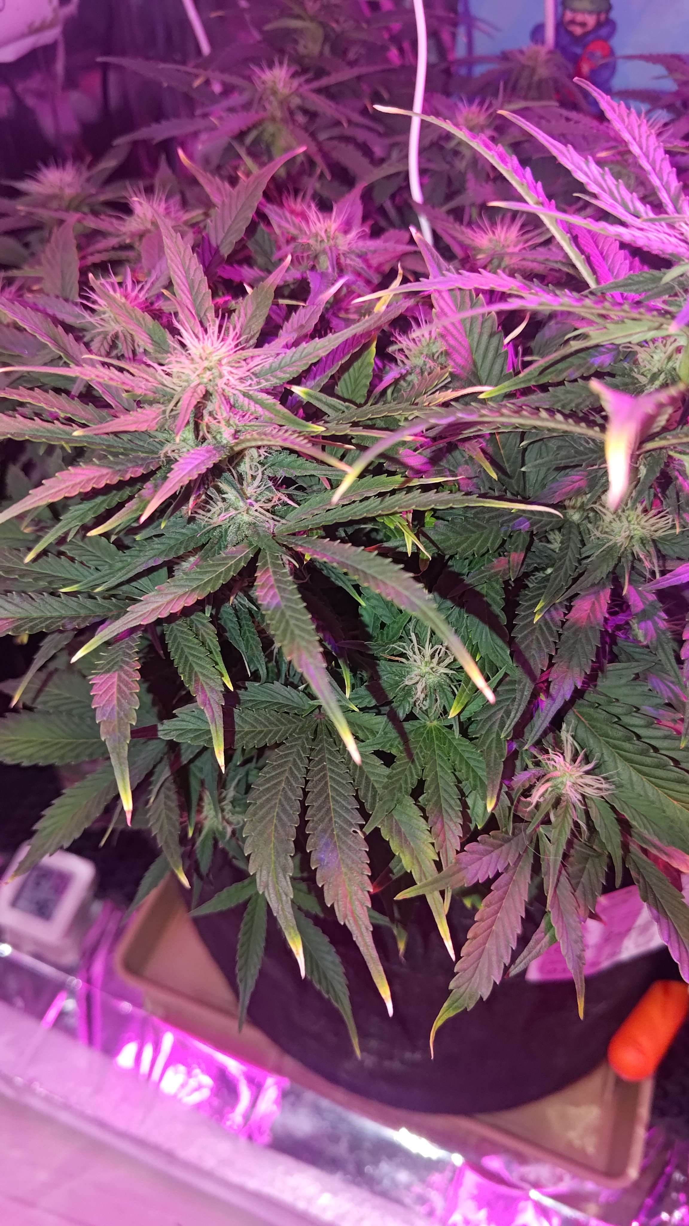 Кажись по дренажу растишка у тебя чутка голодает, можно немного увеличить удобрений до 800-850 ppm или к примеру с осмос водой мешать что бы чистая вода была меньше 300 ppm до добавления удобр. А так красота :harvest