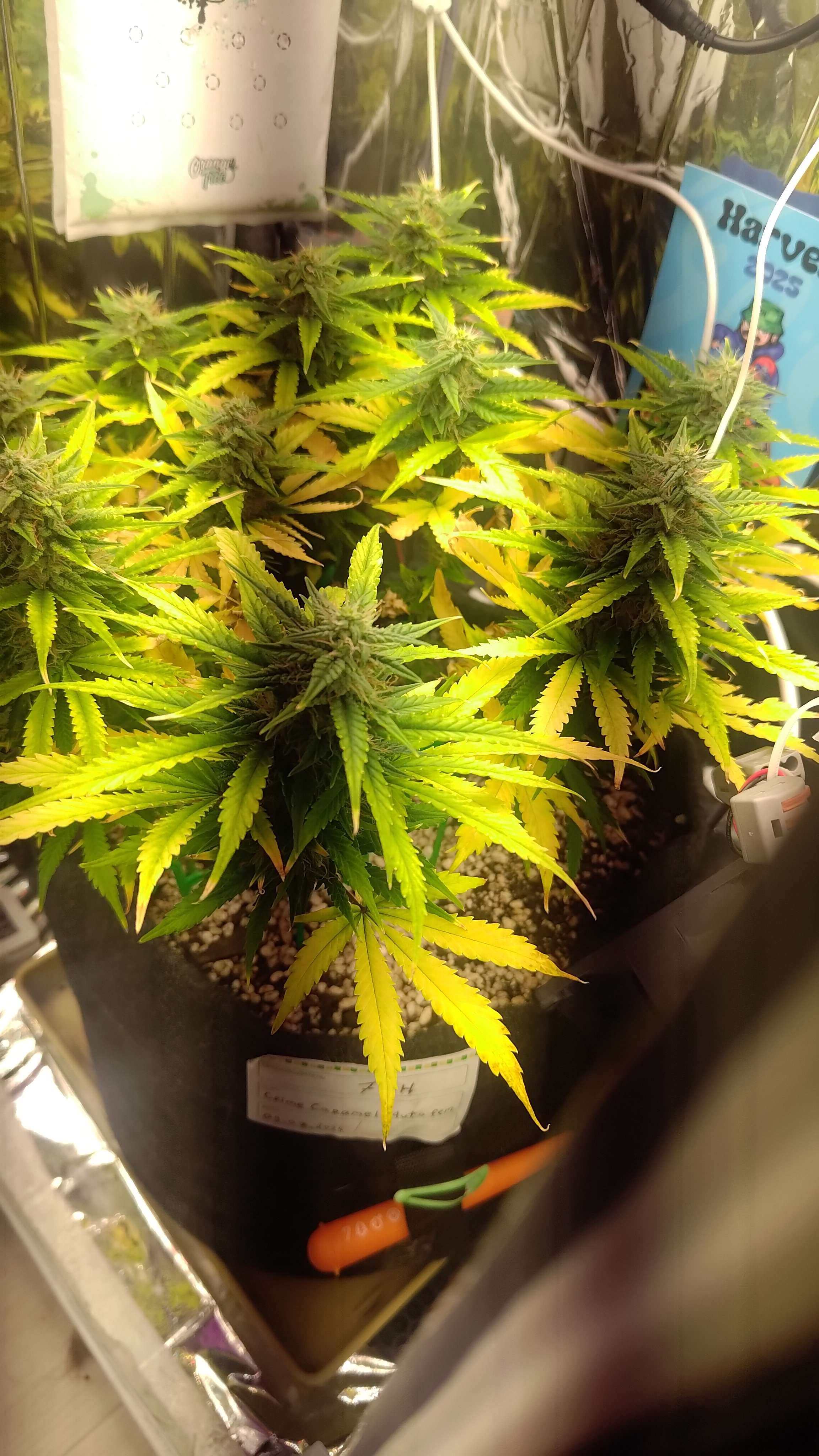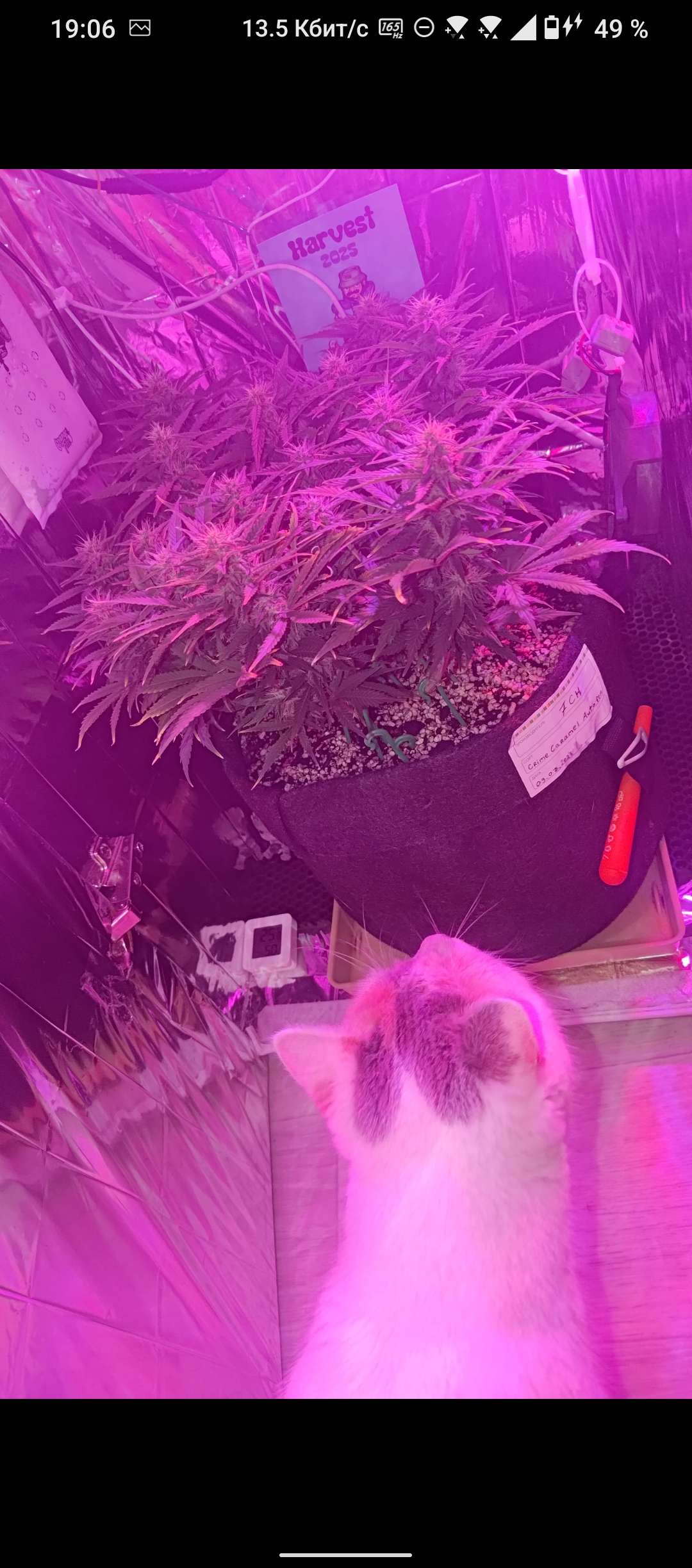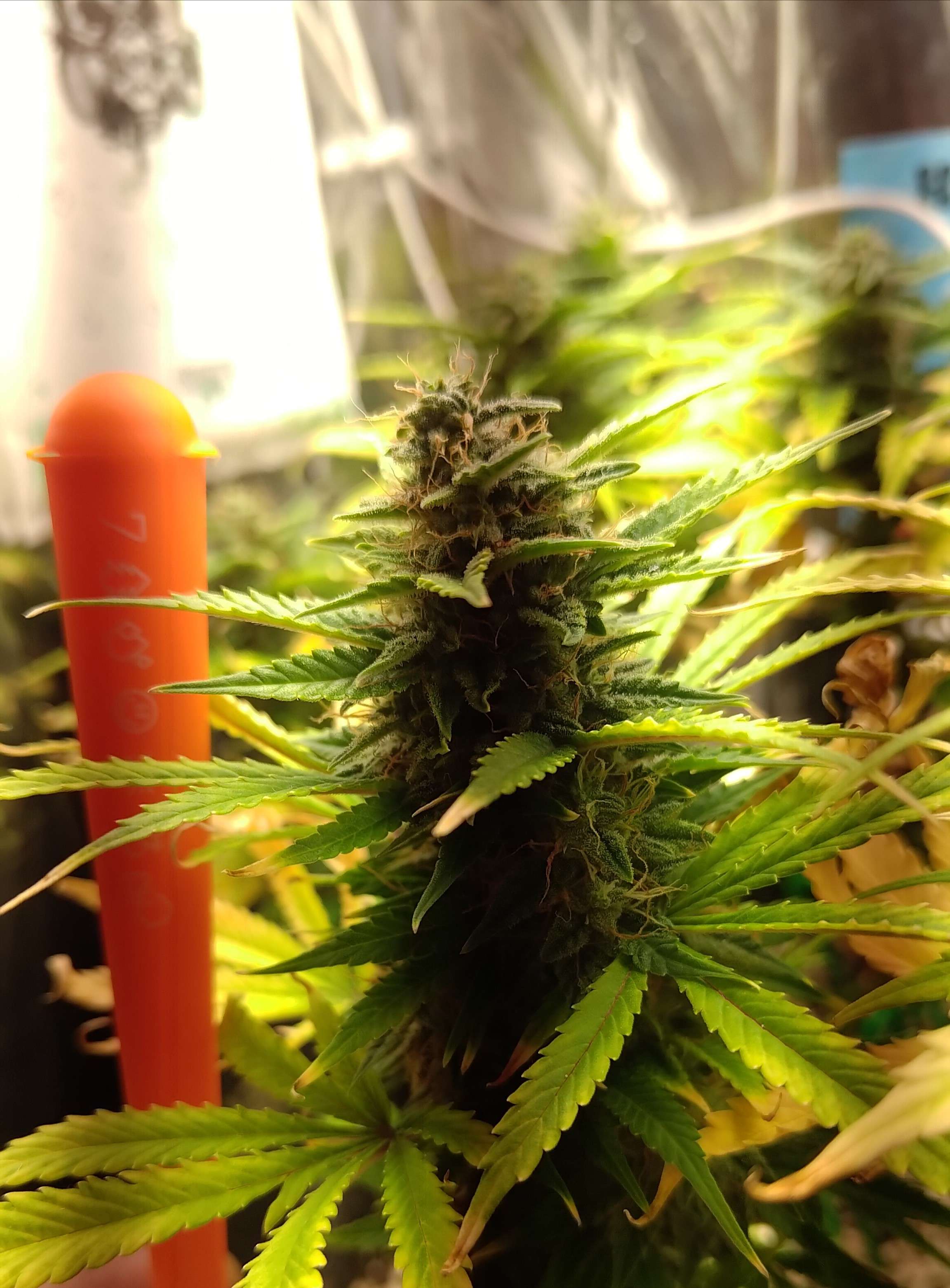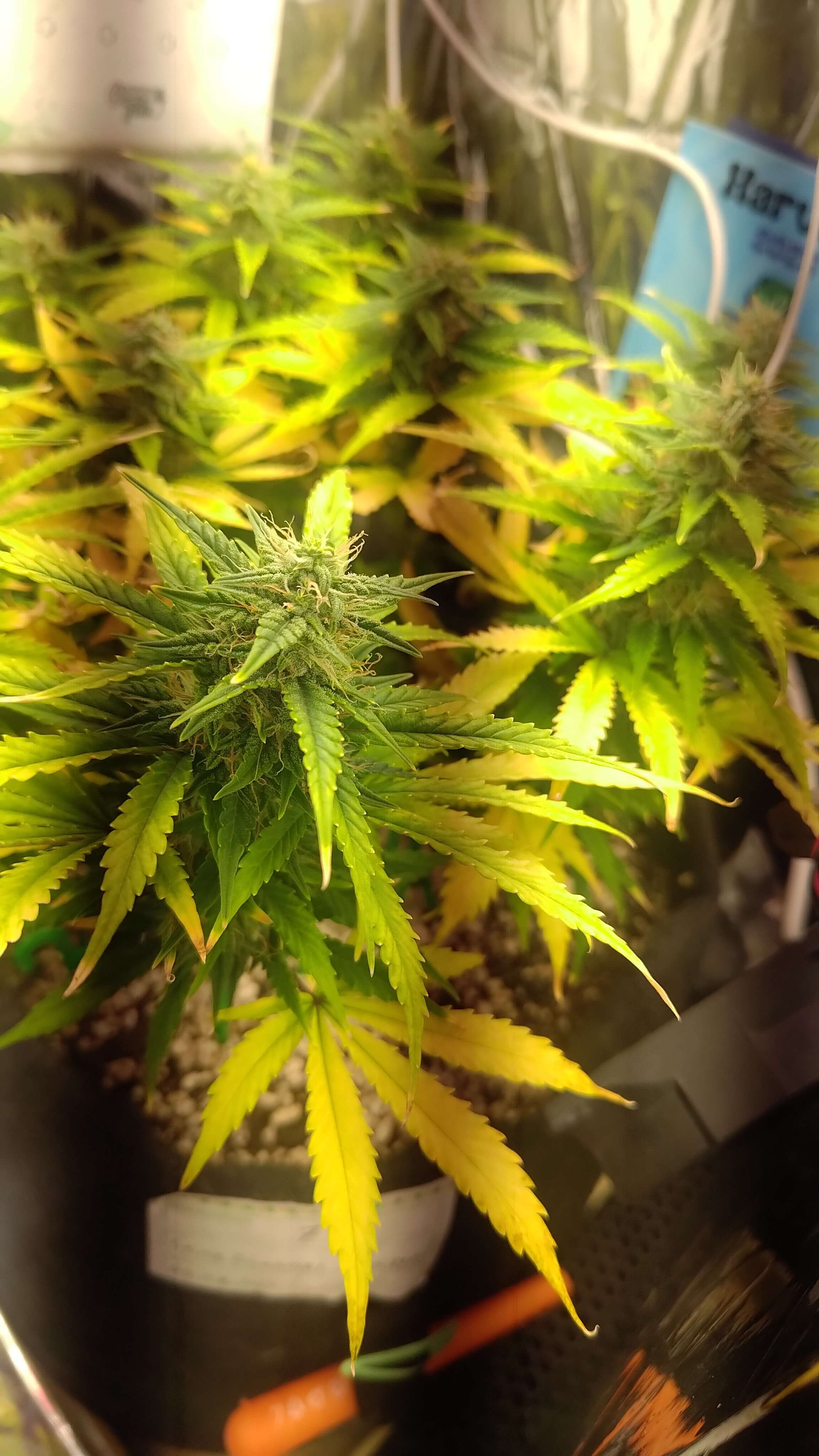 Янтарные трихомы уже появились на всех шишках, много янтаря ждать не будем сорт итак индичный. У Фреи началась засуха, как никак третий день без воды, влажность 39