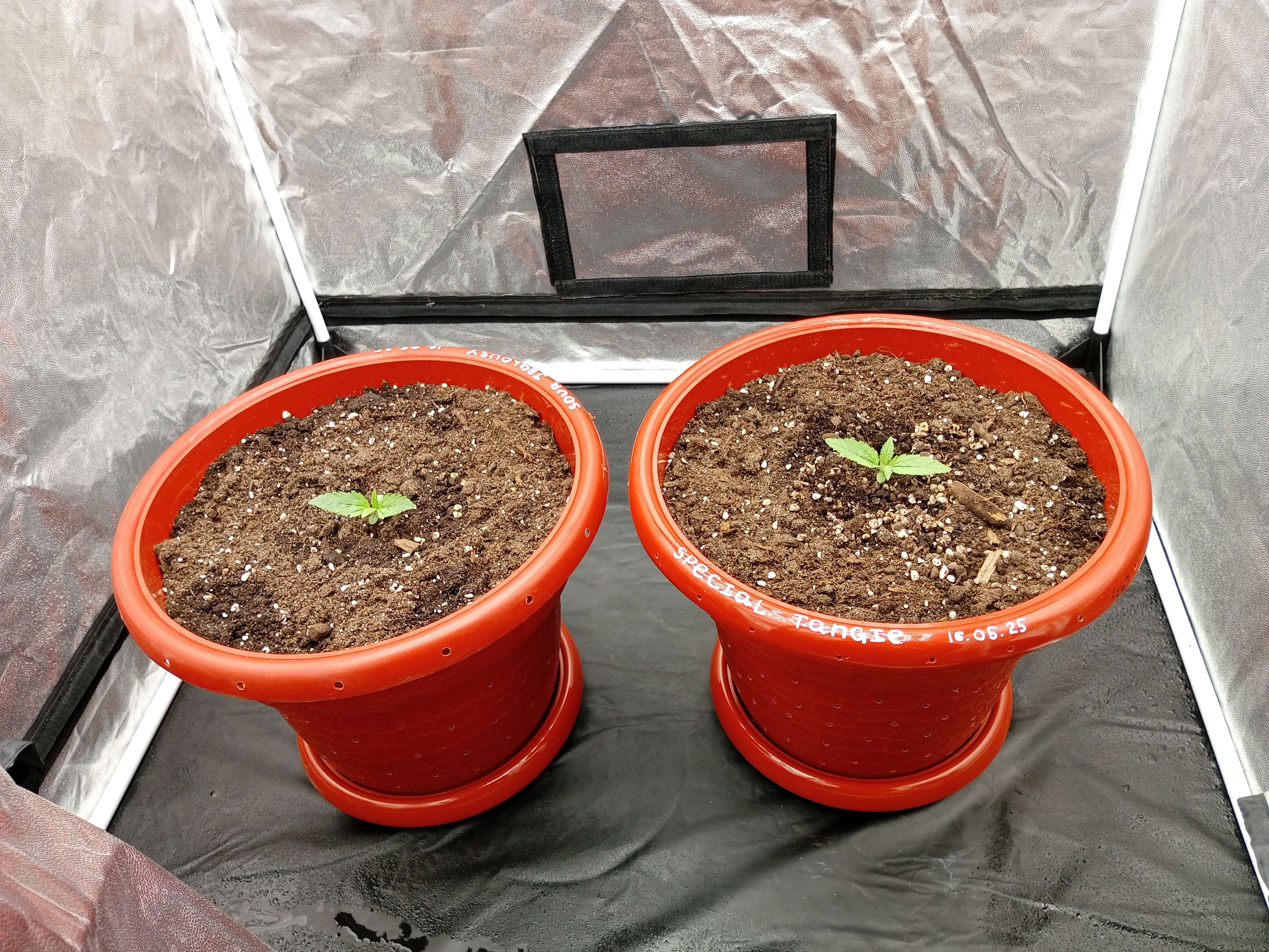 Вчера приехала вентиляция, весь день устанавливал, устал, как собака (конструкция моей палатки хоть и стандартная, но дешманская - отсюда много неприятных моментов в процессе было). Да ещё и жара. Короче, у меня мозга за мозгу заехала и я напортачил( вылил 1.5 в каждый горшок. На ус уже намотал.