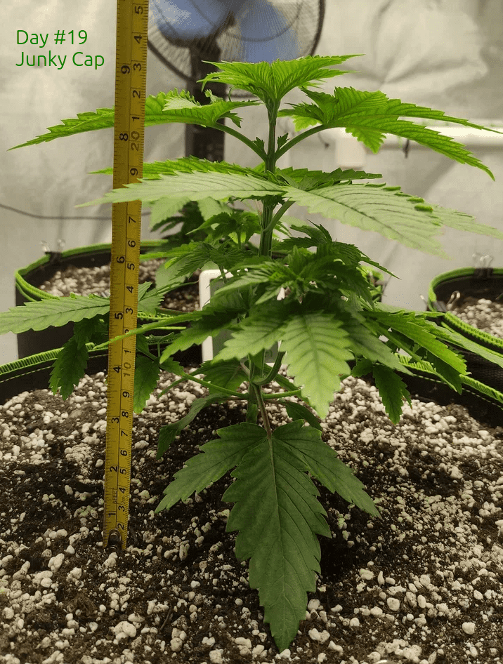 Убавил свет с 50% до 38% (от 700 Вт), хочу проверить как Маркер отреагирует, а то высота у него 14см (у Джанки 24, это при всходах в один день) и кустится вширь.
