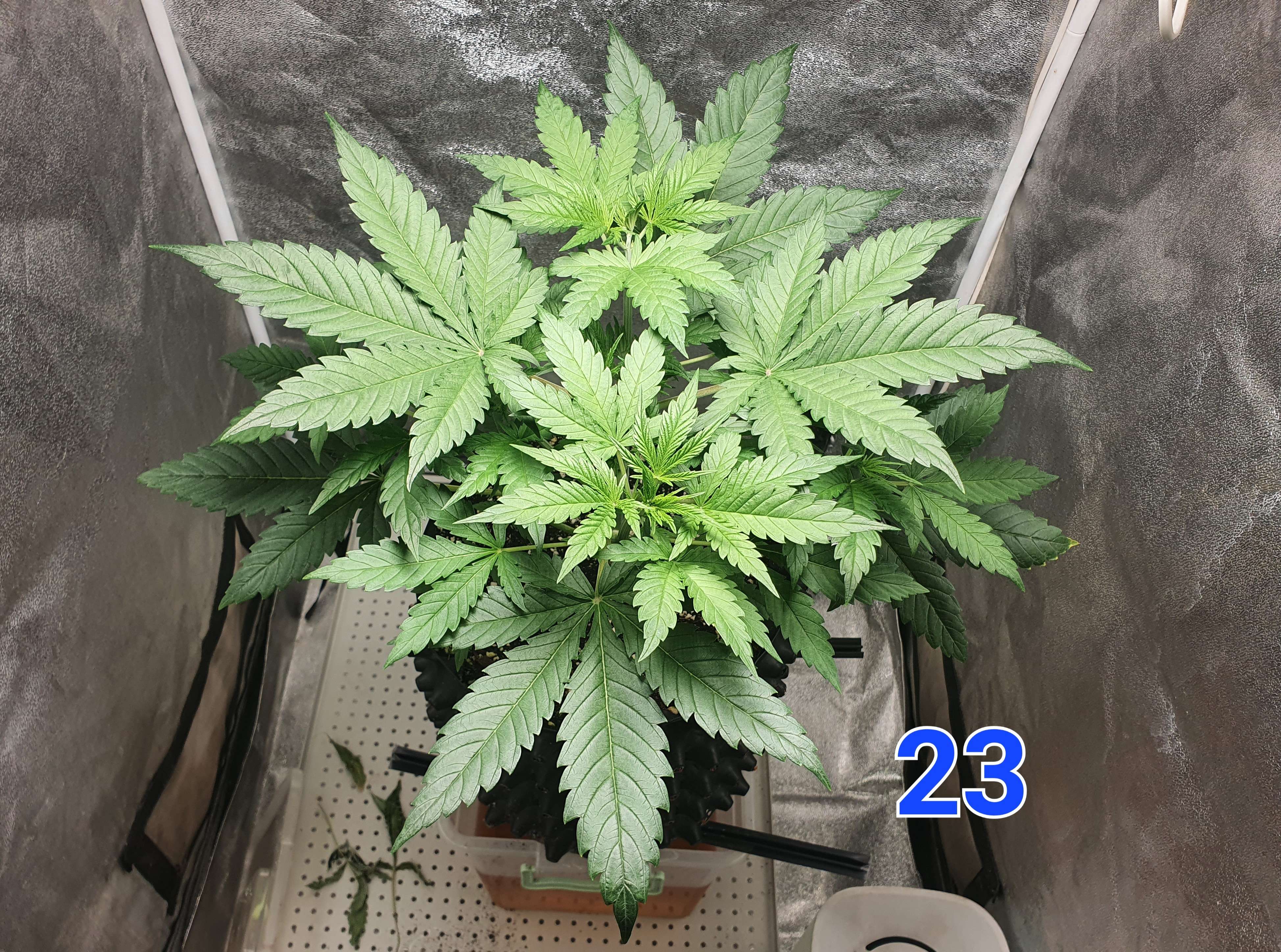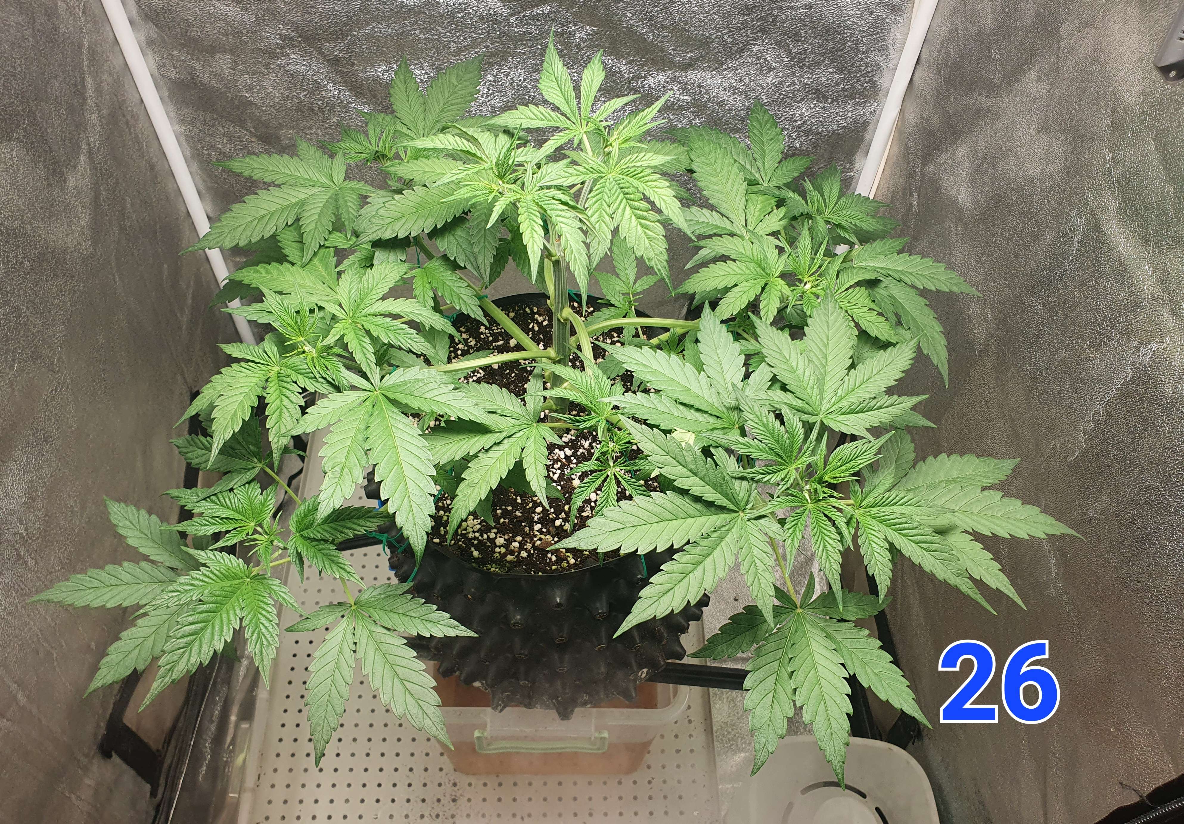 На 24й день растянул первые два этажа растишки и убрал 2 лопуха. Те этажи что выше буду тянуть когда вырастут сильнее.
