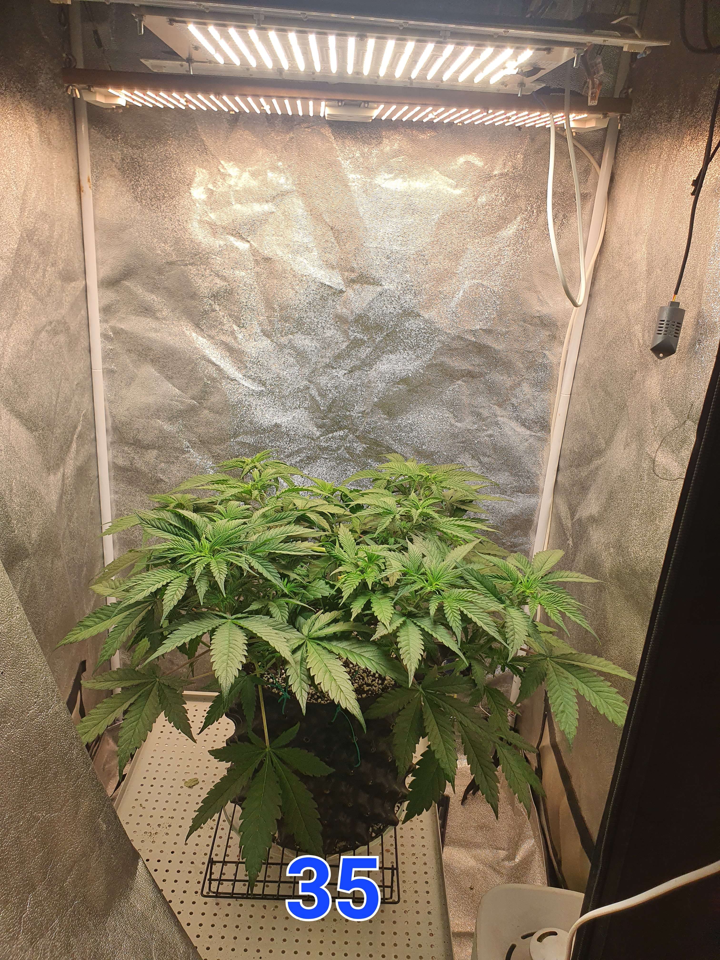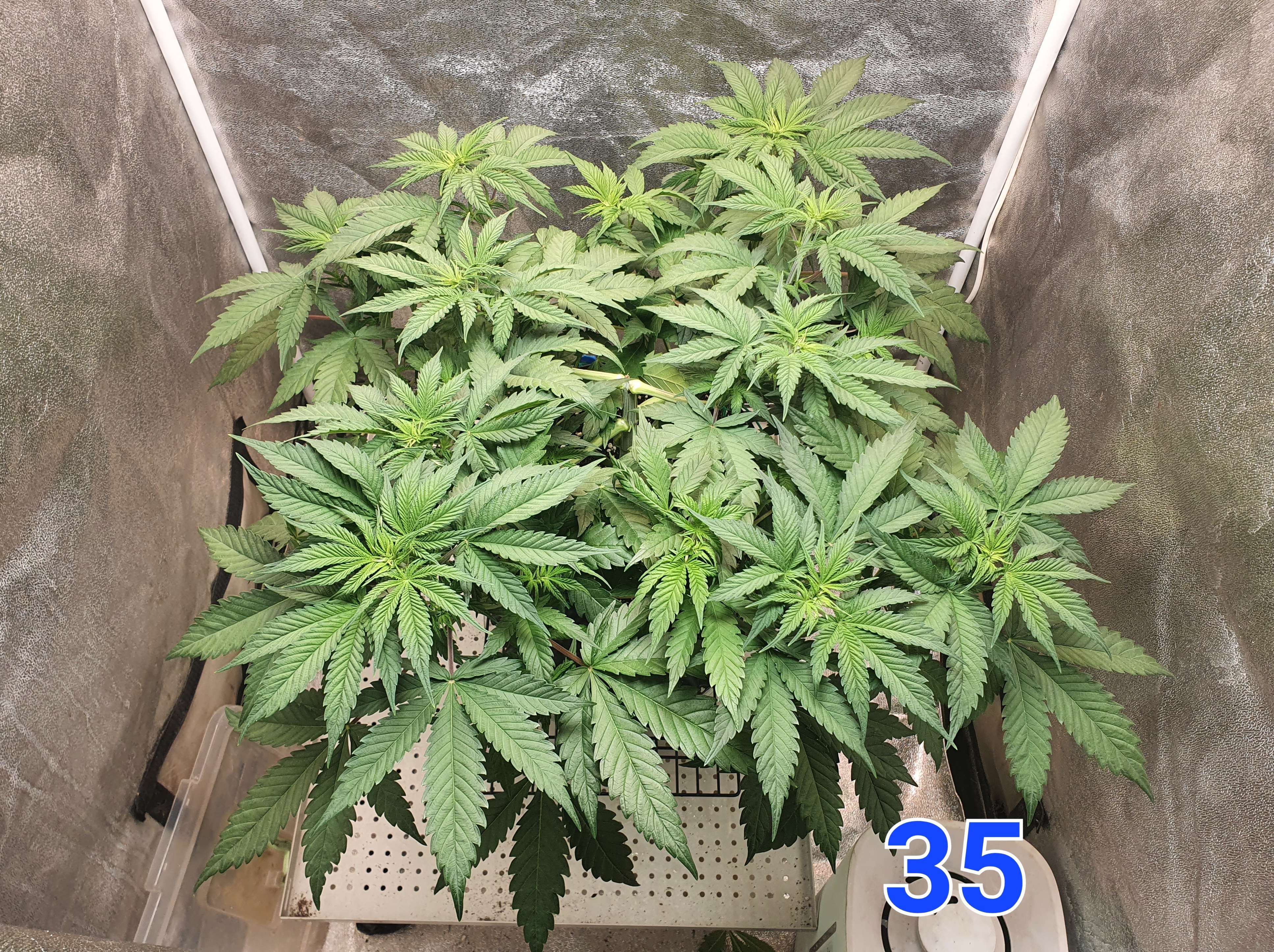 На этой неделе с фото успел застать лишь один день. Не было возможности заниматься кустом, как итог куст поливали 1 раз в день 1 литром компота (ph 5,8-6,2), что уже было мало (нужно 2 литра). Так же сломался увлажнитель воздуха, как следствие 30% влажности и температура 29.