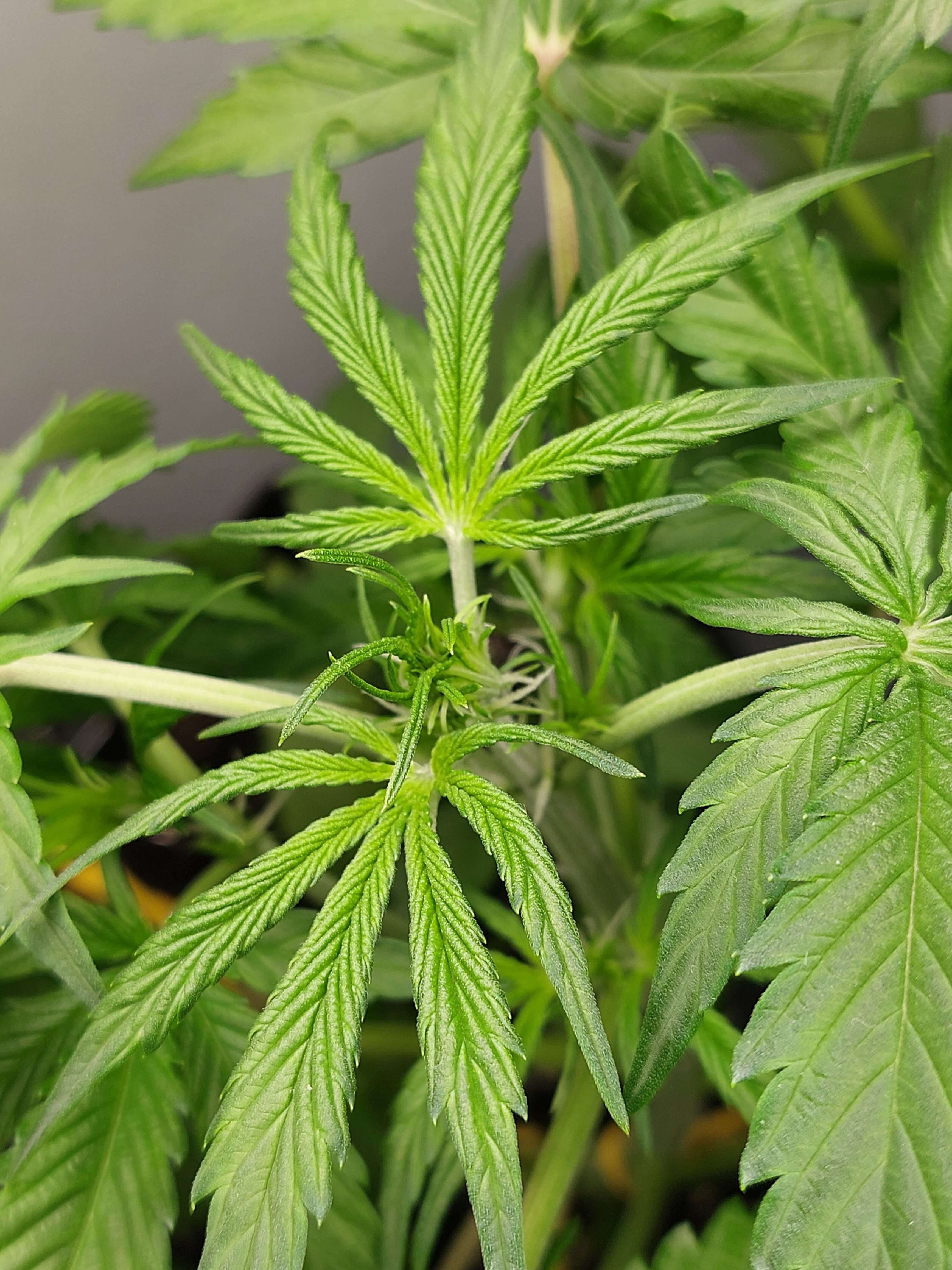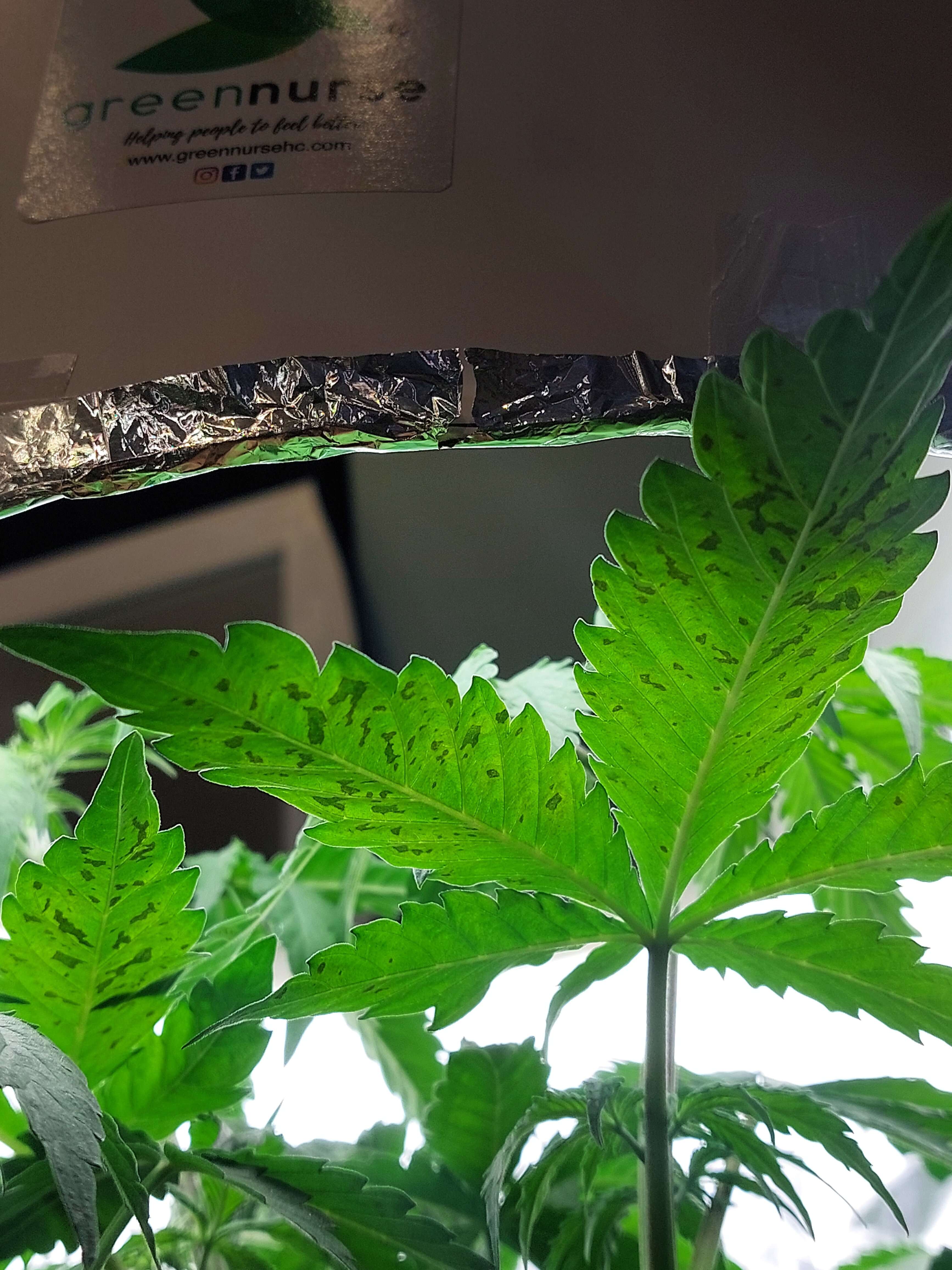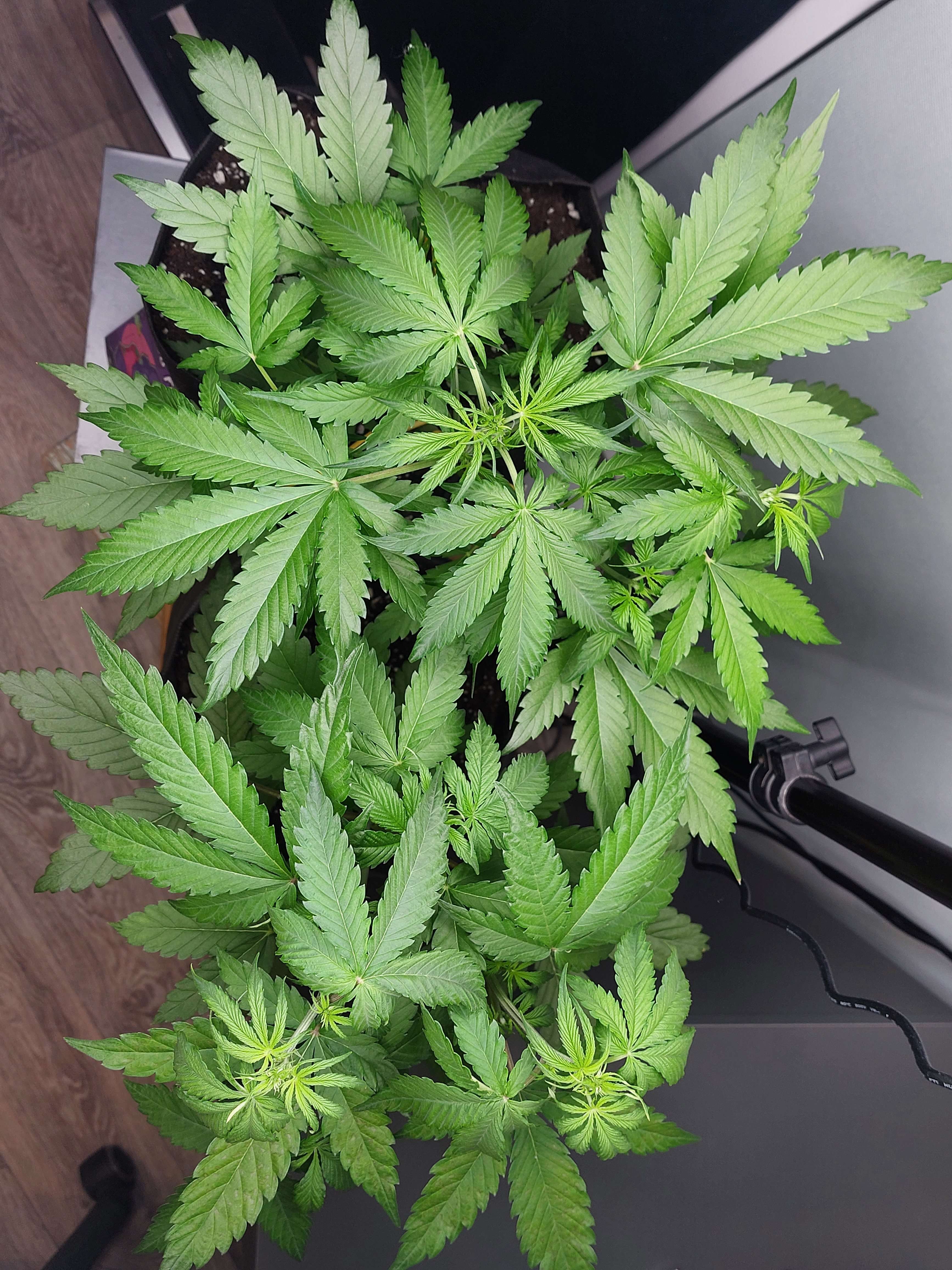 Привет бро, если пол показала считай что предцвет начался, удобры на вегу (азот) будут тормозить цветение. Пятна на листе выглядят как микруха какая то, хотя на фосфор тоже похоже, может блок?? 6,2пш маловато, надо 6,5-7