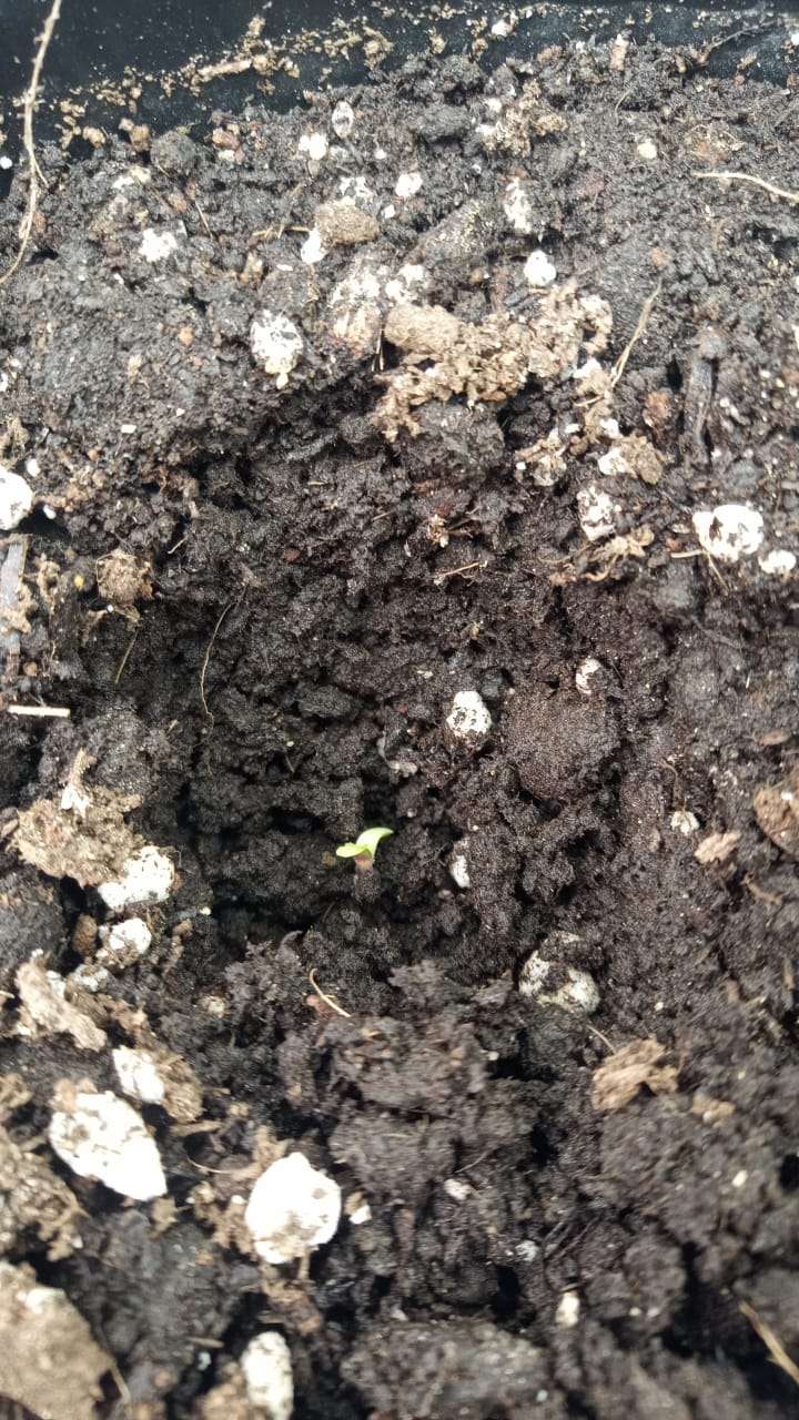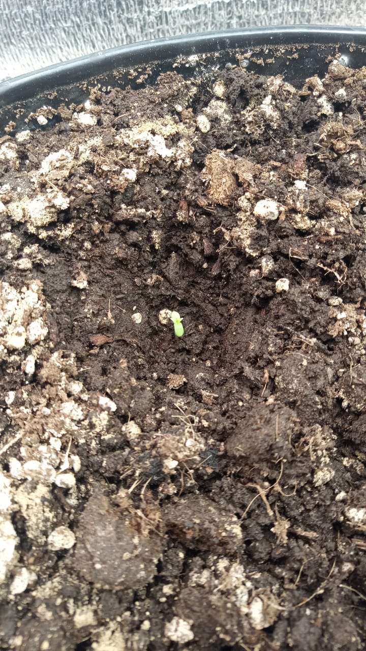 посадил вчера в углубления, буду подсыпать по мере роста. сразу в основные горшки, без пересадки. сегодня, 09.09 пробились, сперва корешь, потом зулу. каски в земле остались.