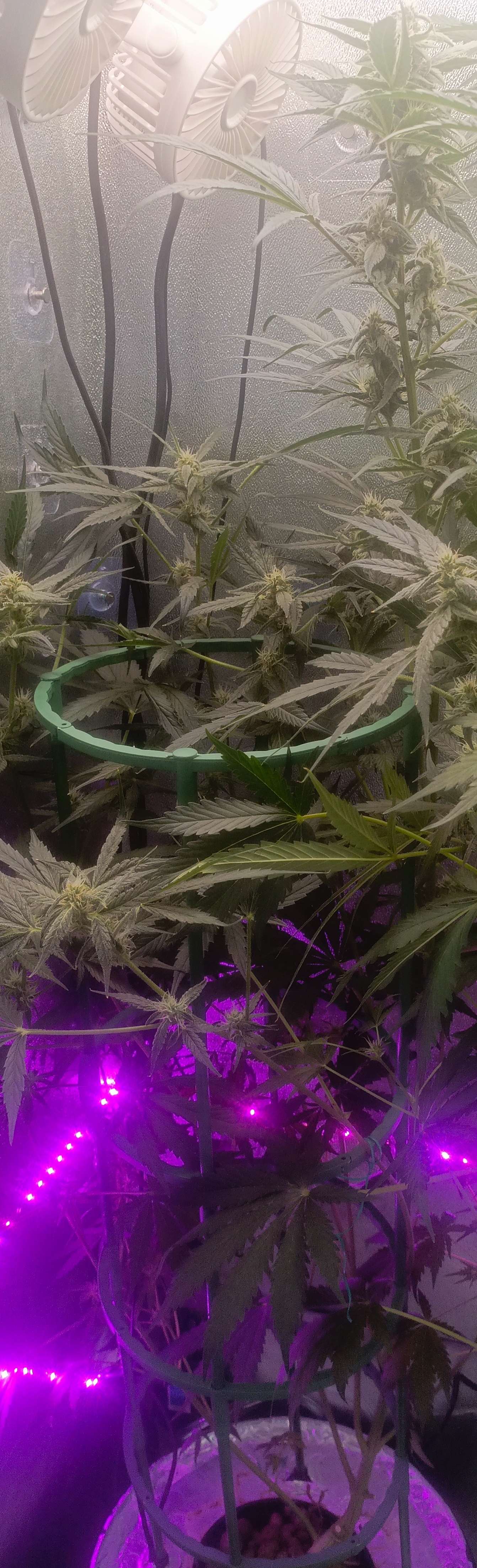 Произошёл форс мажор у одного растения проявился гемофродизм большую часть стеблей пришлось удалить. К сожалению фото не было сделано в этот неблагоприятный период. Поэтому дальше буду стараться довести до харва хоть одну растишку, второй сколько успеет набрать, все бананы с пыльцой были вовремя замечены и убраны путем отсечения веток. Не знаю из за чего это произошло, скорее всего стрессанул, после подгиба на стадии цветения. Но что характерно рост продолжается постоянно вытягивается, тогда как первое уже неделю набирает массу на шишки...