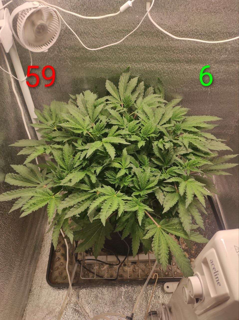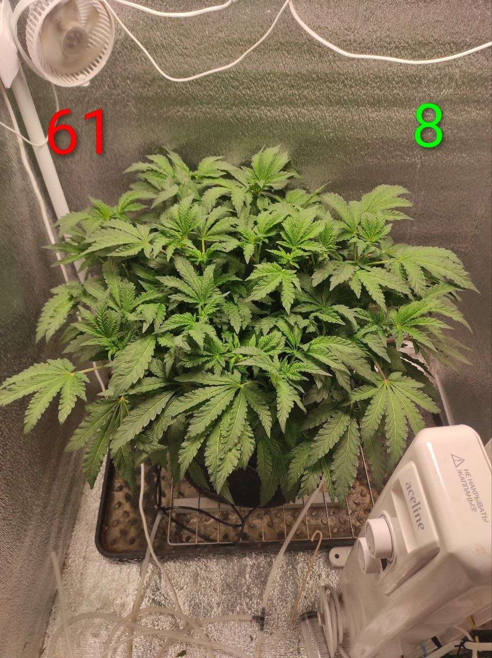 По питанию перешел на таблицу цветения. Также заказал Трихономайзер от Rastie. Первый раз дал по листу, еще осталось примерно на 3 применения. Следующий раз планирую через пару недель, потом в середине цветения и ближе к концу. Надеюсь, это поможет немного увеличить количество трихом.