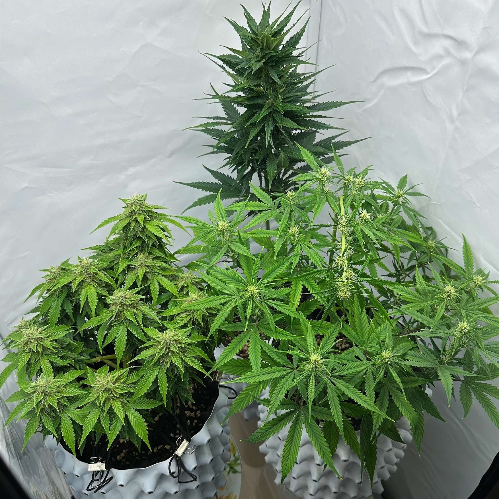 Вдова странная дама, все таки там не шишки у нее, а какая-то непонятная хрень потом когда зарублю, сфотографирую поближе и получше. Даже не знаю как это описать ) сначала я думала, что она начала все таки формировать шишули, но нет.. вместо шишек как будто просто кучка листиков с трихомами. Что с ней делать потом не совсем понятно