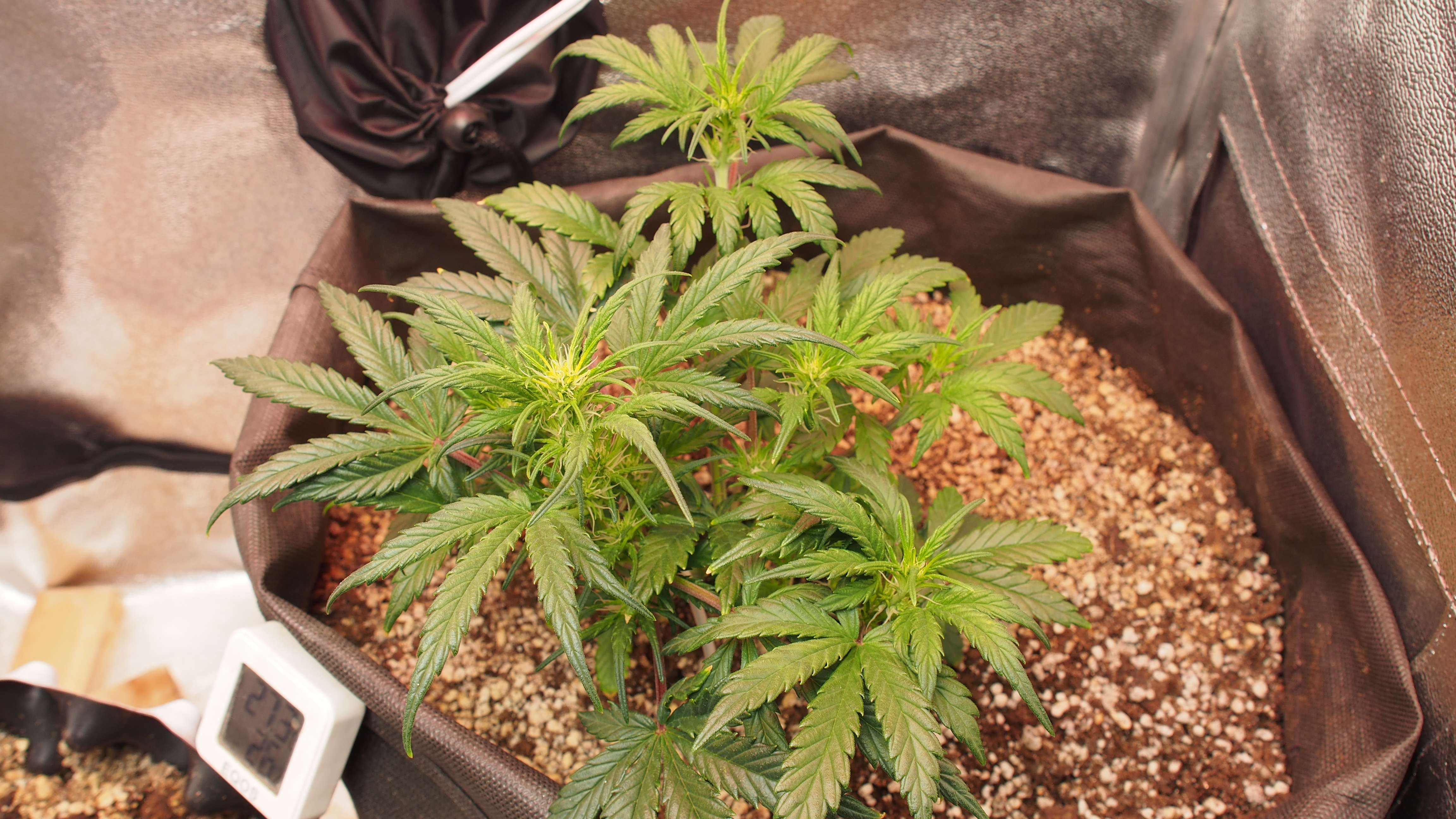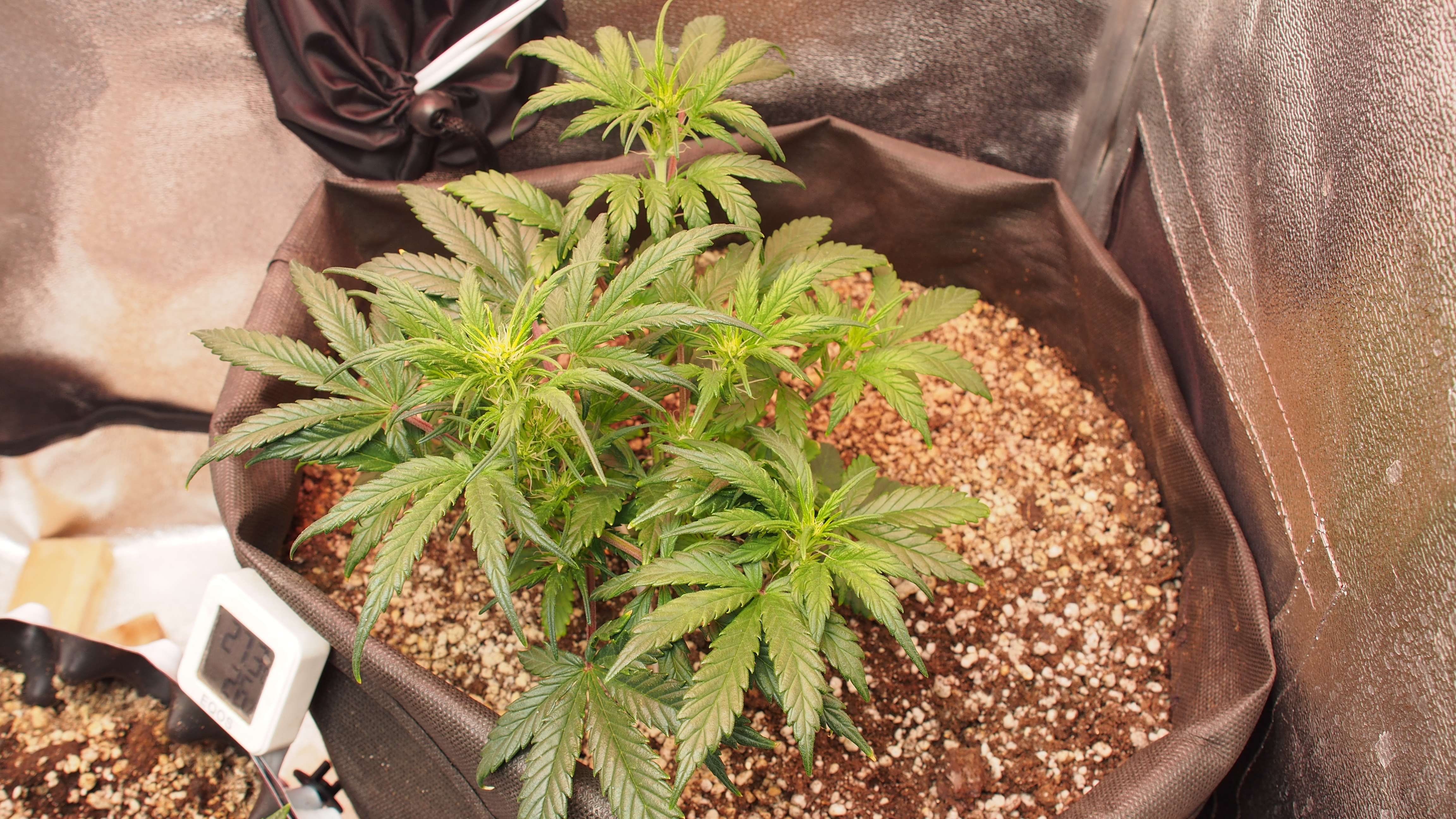 * после двух недель - пересадка в гроубэг 20 литров. При пересадке было видно, что корневая не особо заполнила даже стаканчик. Пересадка прошла без видимого стресса.