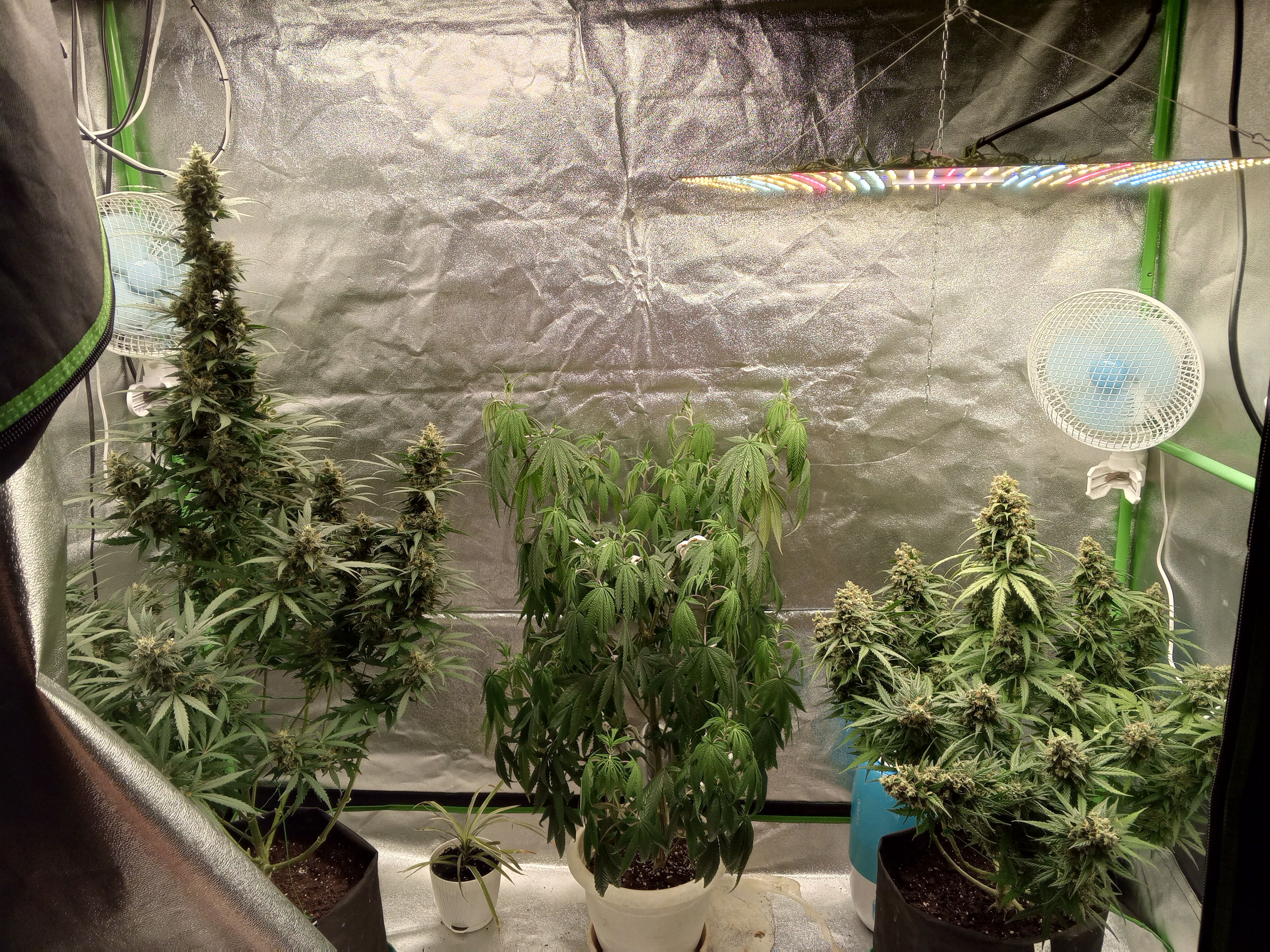 76 дней сегодня Флориде. По сути, по паспорту готова, но трихомы прозрачные, а ветки уже не держат. Ей бы скрог не помешал, падает.