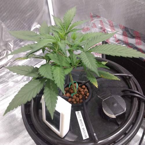 ще две недели вегетации прошли без сюрпризов и неожиданных проблем. К концу пятой недели кустик представлял из себя небольшое, но крепкое растение с широкими листьями. Автор репорта не применял никаких методик тренировки растений. В течение этих двух недель количество удобрений было увеличено до 1.3 мл/л. За счет этого ppm раствора составлял 700.