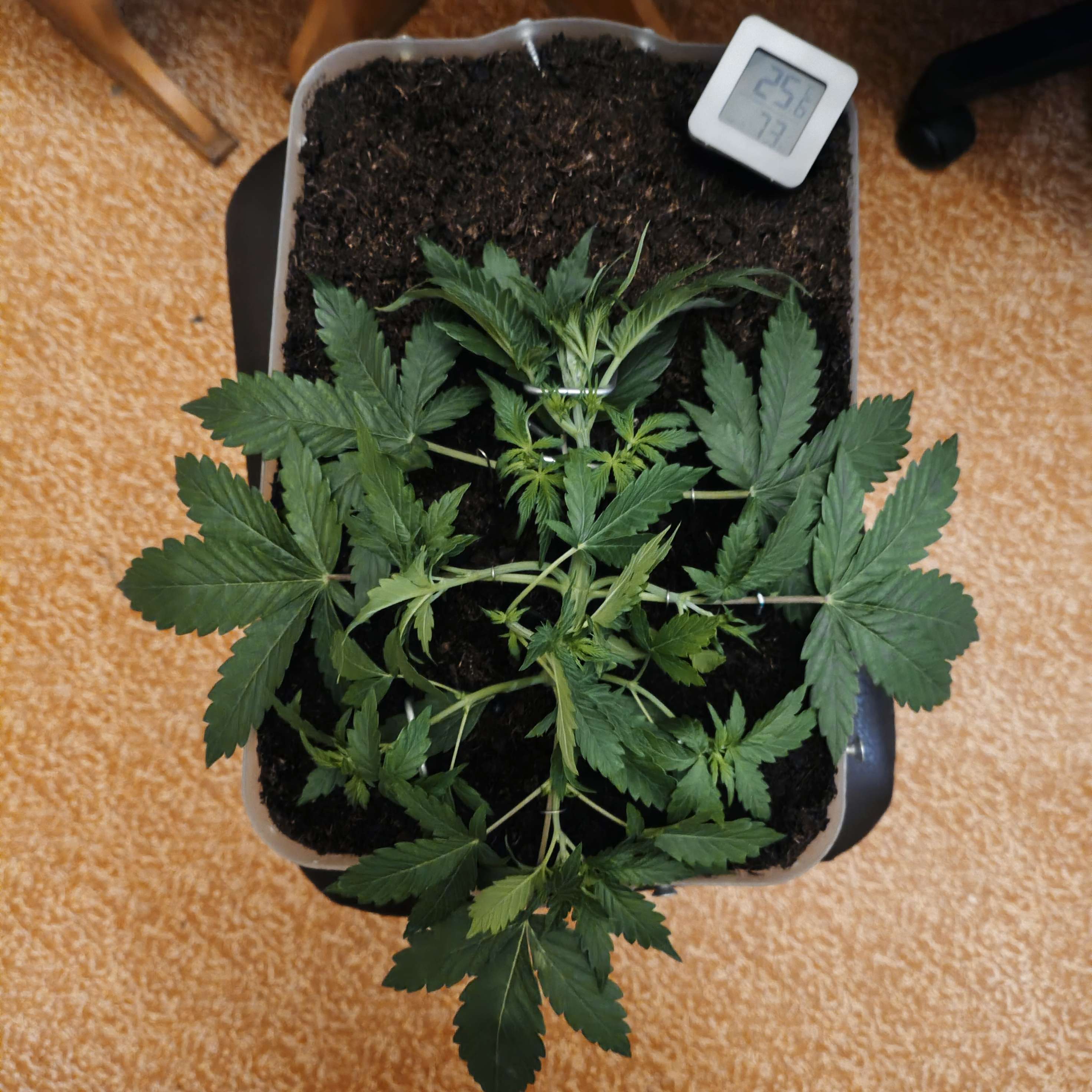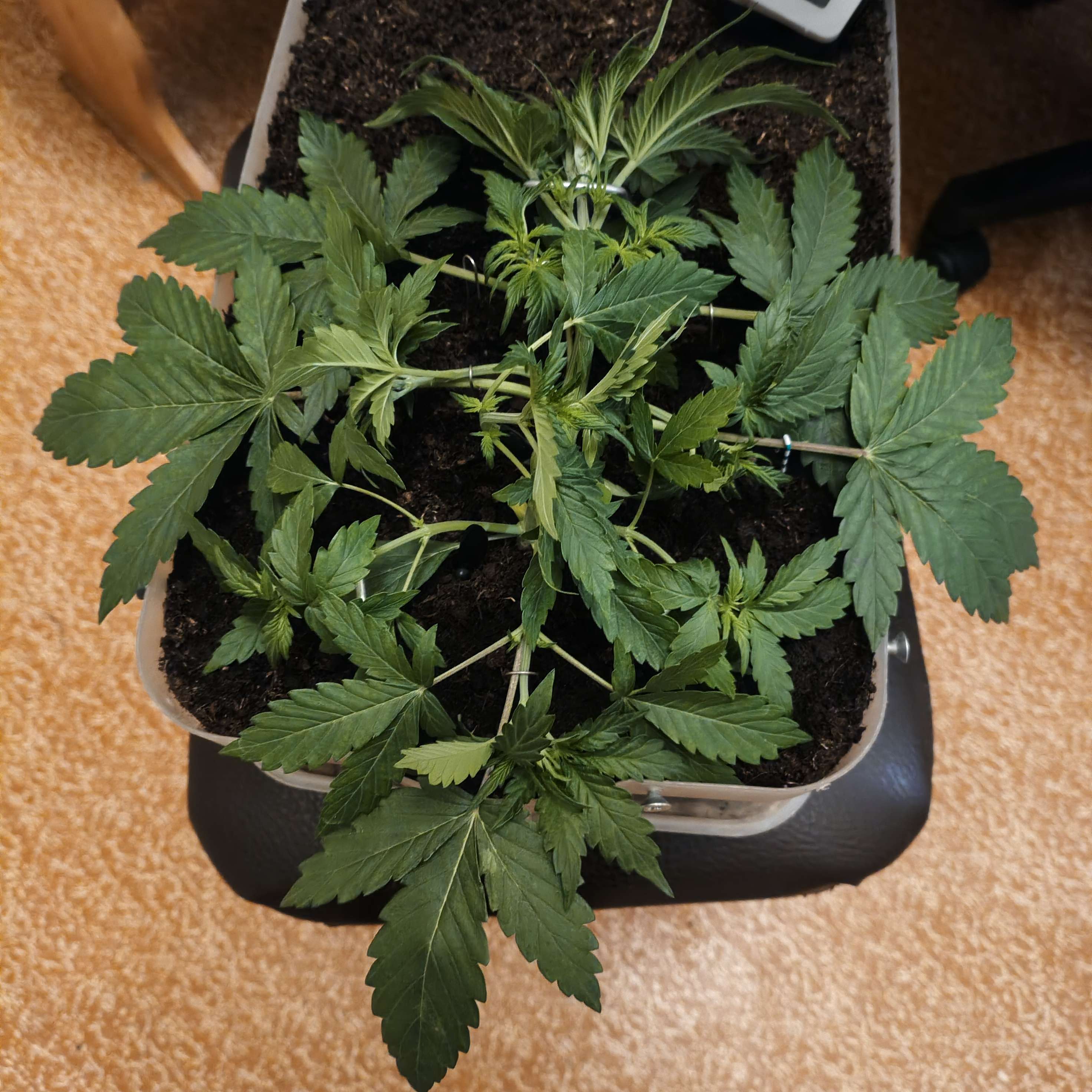 Растяжка идёт на пользу. Стелиться красиво, доросла бы до края горшка?!)