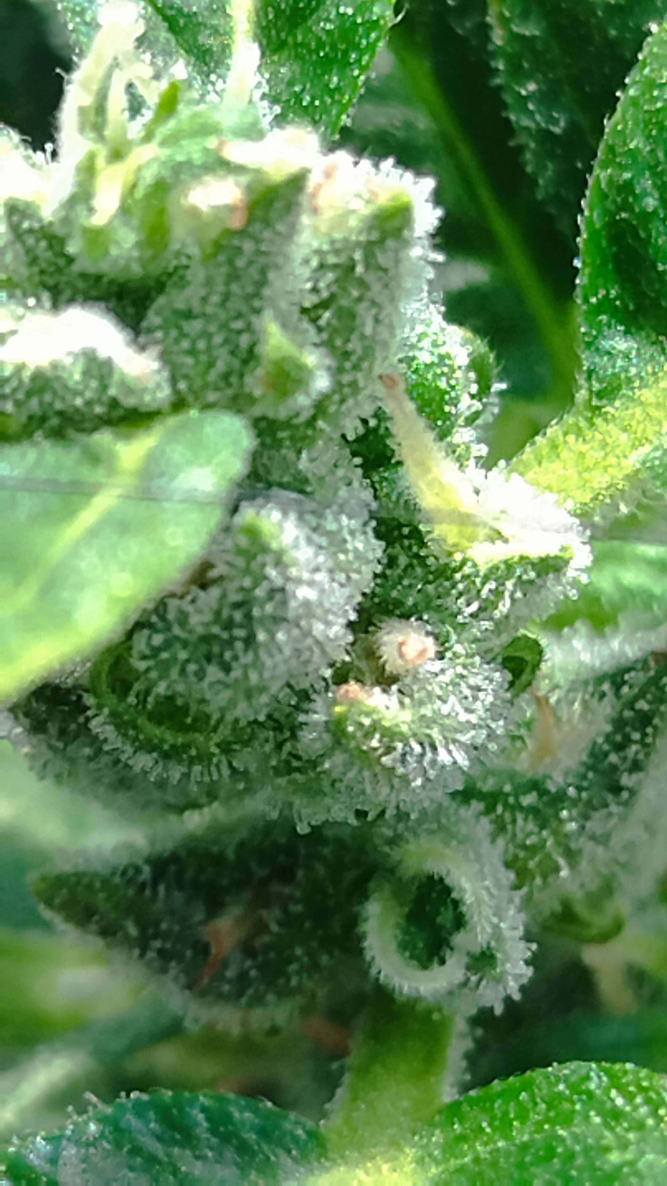 Очень долго я ждал этих моментов. Теперь видно уже, ради чего весь этот движняк. Радуют трихомы, плотненько так обрастают. На улице жара настала. Полив вода по мере просыхания грунта. Пьёт Фараон уже заметно меньше.